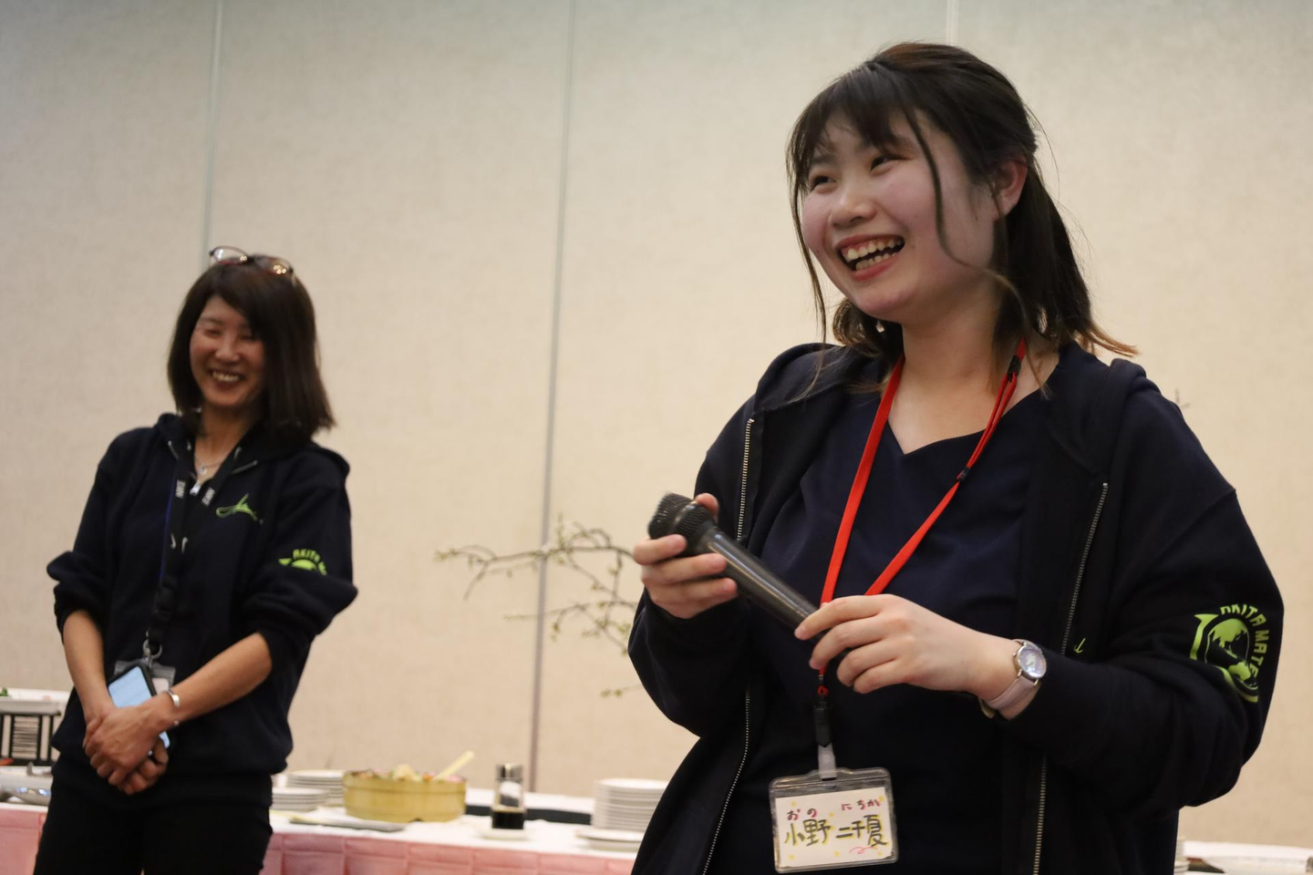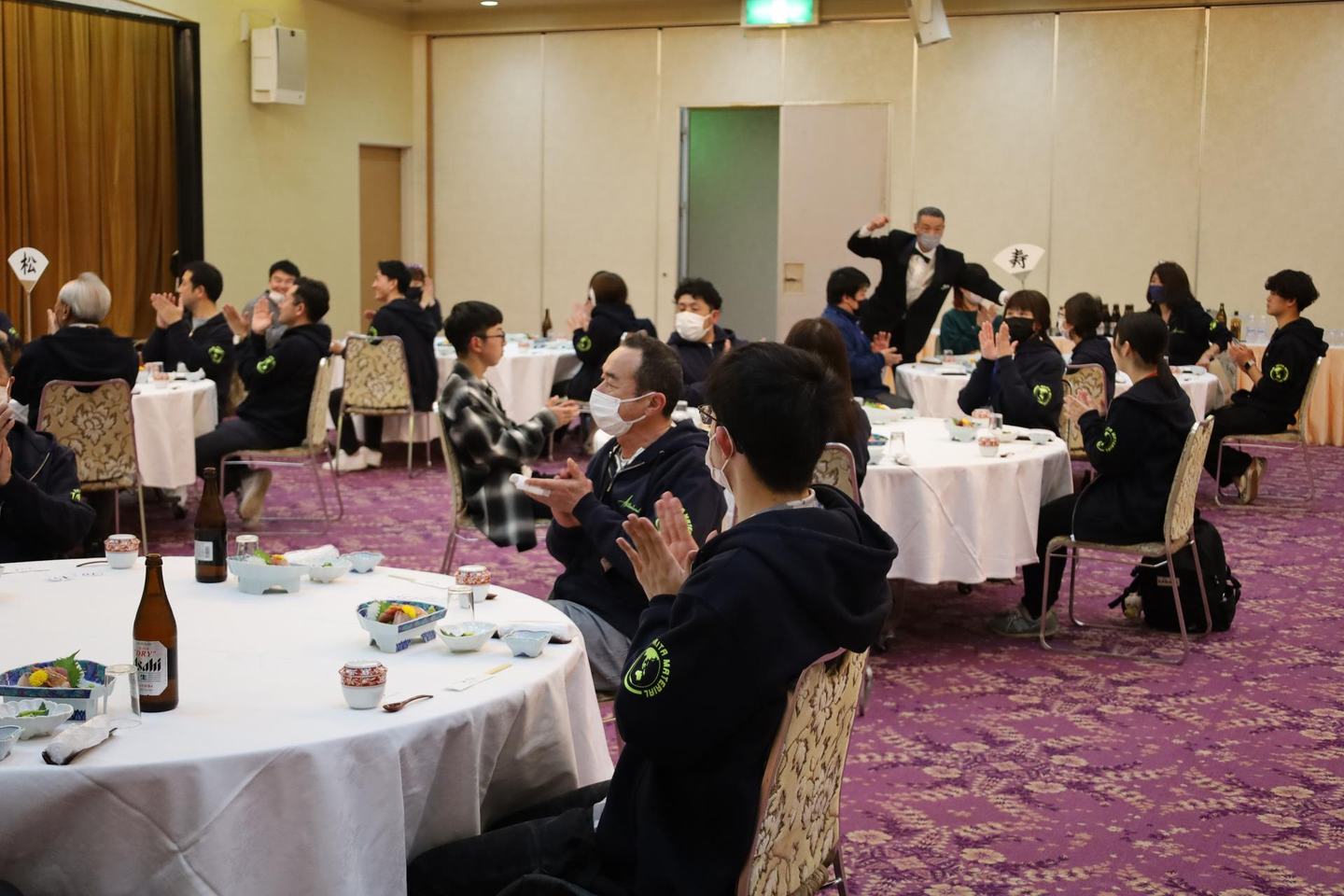 会場を旅館「いちえ」に移し、懇親会を開催!美味しいお料理と飲み物、パフォーマンスタイム、新入社員からの質問コーナーなどコンテンツも沢山で大いに盛り上がった時間でした。パフォーマンスタイムには、新入社員の晴れの日のお祝いに3組のグループが登場!