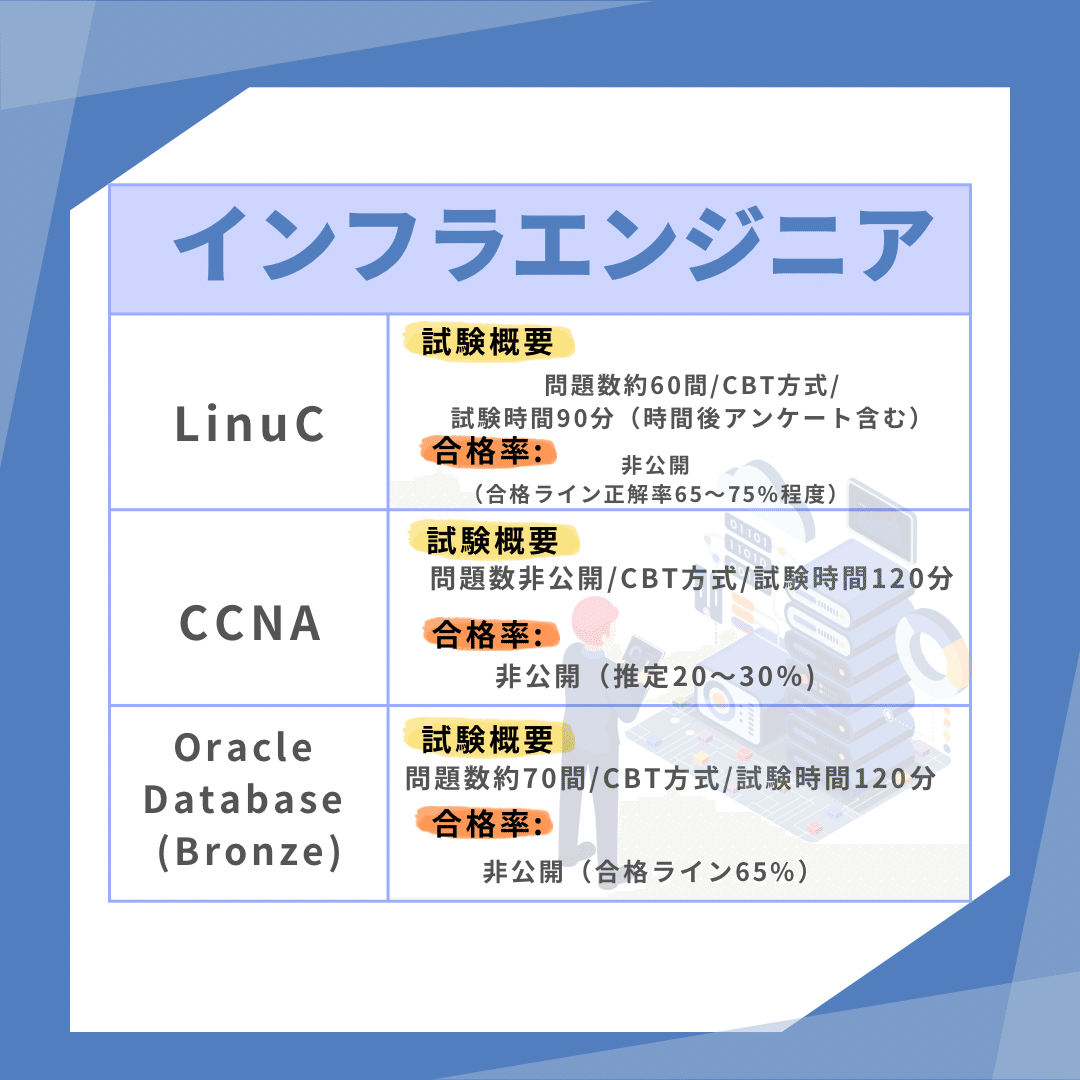 - CCNA:ネットワークの重要資格。合格率は20-30%と難関