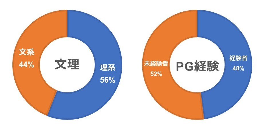 今年の内定者たちは、文系56%、理系44%と、バランスの取れた多様なバックグラウンドを持っており、52%がプログラミング未経験者です。未経験者も安心して学べるよう、充実した研修体制を整えています。入社前から始まる内定者研修に加え、入社後も3か月間のOJTやチューター制度でしっかりとサポート。プログラミングやインフラ研修では、JavaやLinuxなどの基礎から応用まで学べ、Project-Based Learning(PBL)を通じて実践力も養います。
