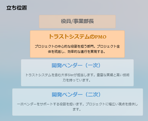 各開発ベンダーとクライアントの役員/事業部長クラスの間になりますので、外部ベンダーというよりは、