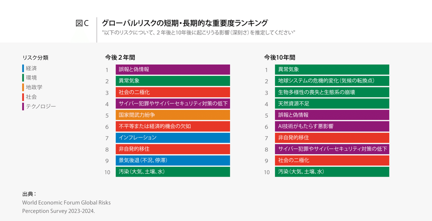 画像出典:世界経済フォーラム「グローバルリスク報告書2024年版」P8 https://www3.weforum.org/docs/WEF_The_Global_Risks_Report_JP_2024.pdf