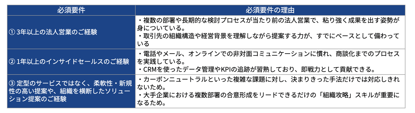 気候変動への対応は、もはや企業にとって後回しにできない最重要課題のひとつ。そんな業界で最先端の動きを見ることができるうえ、提案内容が社会全体のCO₂削減に直接つながる可能性があります。「数字達成だけでは得られないやりがい」が感じられるのが大きな魅力です。 - エンタープライズ営業の高度なスキルが身に付く