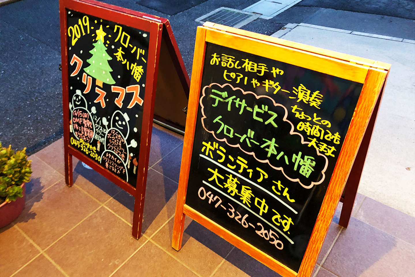 CLOVERが千葉県市川市で運営しているデイサービスの一つ、「デイサービスクローバー本八幡」は、日頃から地域のボランティアさんや子どもたちが集うデイサービスだ。