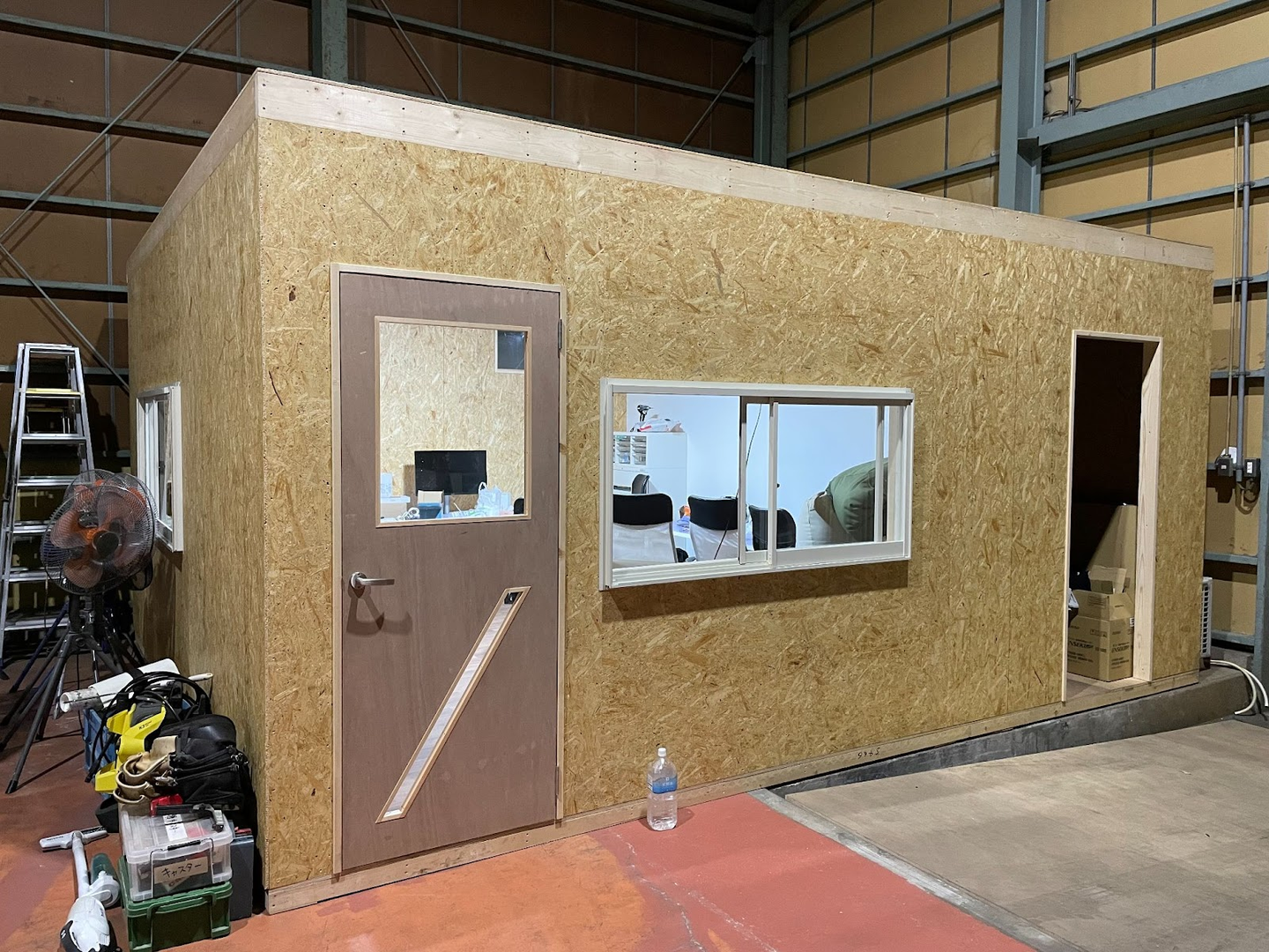 日頃からコンサートやフェスなどで制作・施工を担っていることもあり、ほとんどの工事は自社で行います。西橋本の倉庫では、制作の小出さんが事務所用の小屋(!)を建てました。