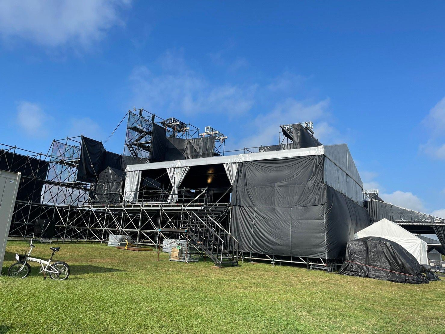 初日、公園の芝生に置いてあった部材がステージに変わり、テントが建って、照明がついて、何もなかった公園の景色が毎日少しずつ大きなフェスの会場へと変わっていきました。