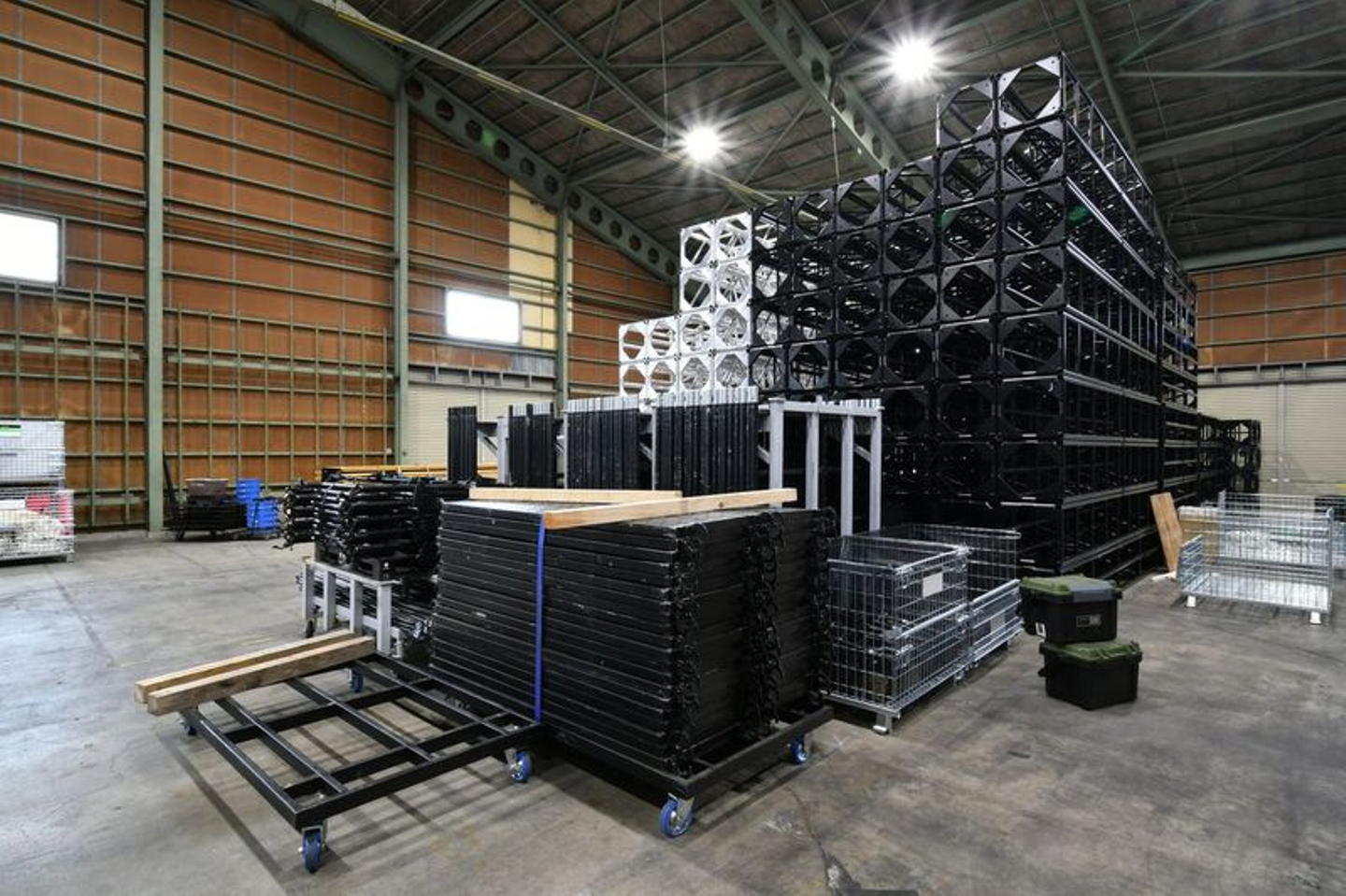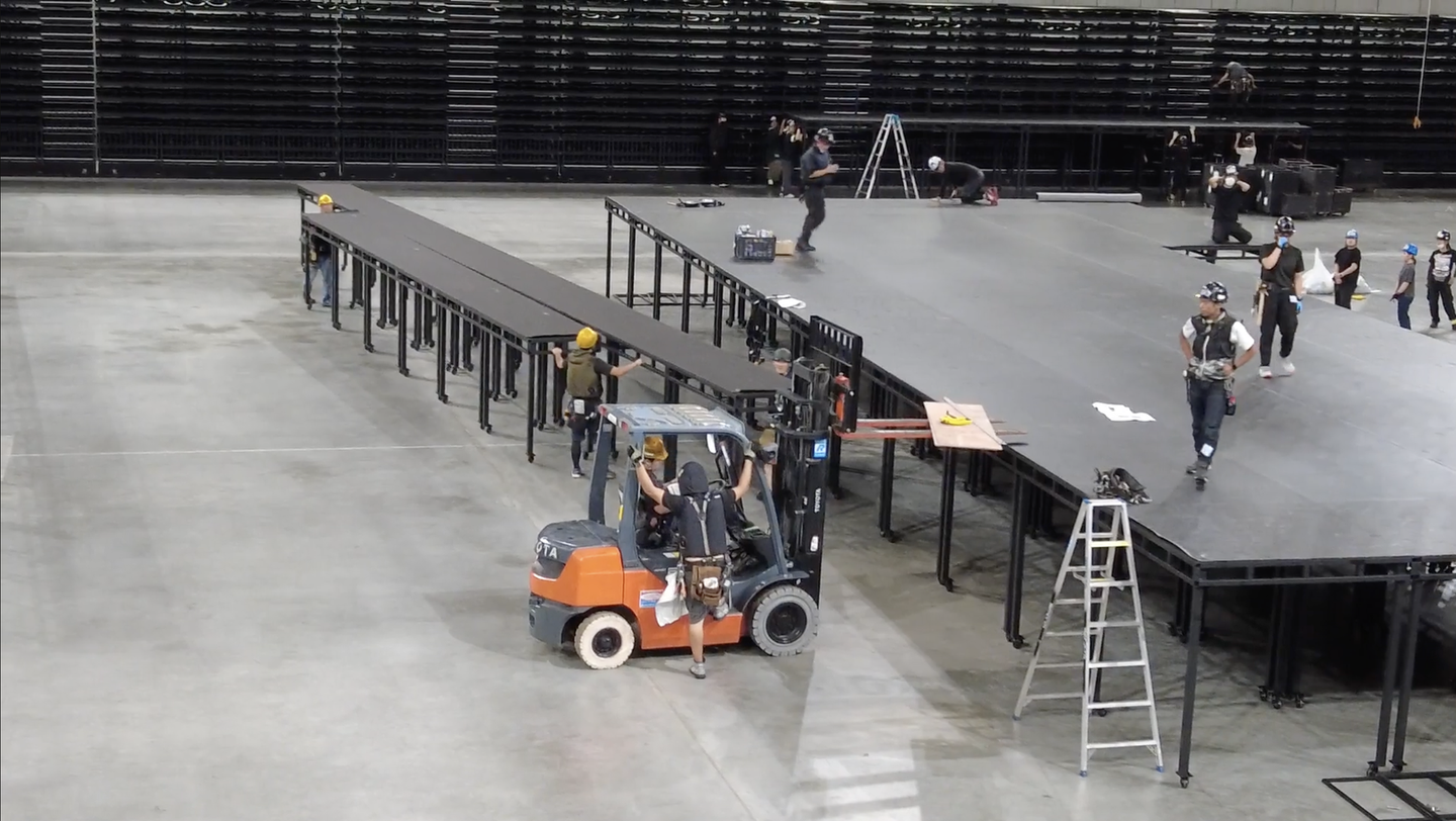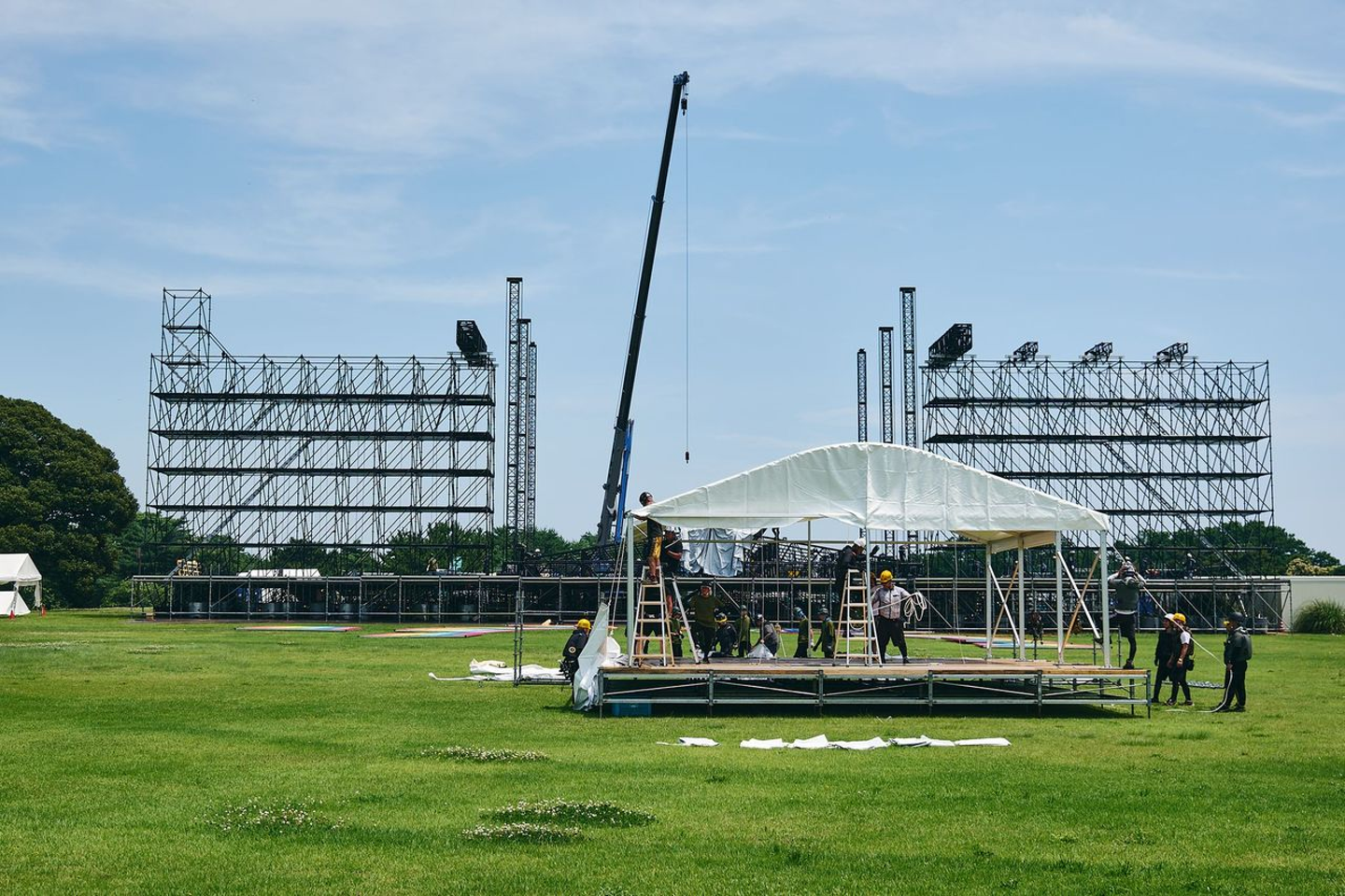 規模によりますが、ドームやスタジアムなどの大規模な会場の場合は本番の5日ほど前から、アリーナなどの場合は1〜2日前から設営をはじめます。(夜間作業のできない屋外フェスや屋外イベントは、10日以上かかることも!)