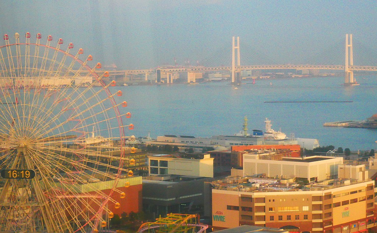 夕日に浮かぶ観覧車とベイブリッチがこれから始まるパーティーを盛り上げてくれそうです♡