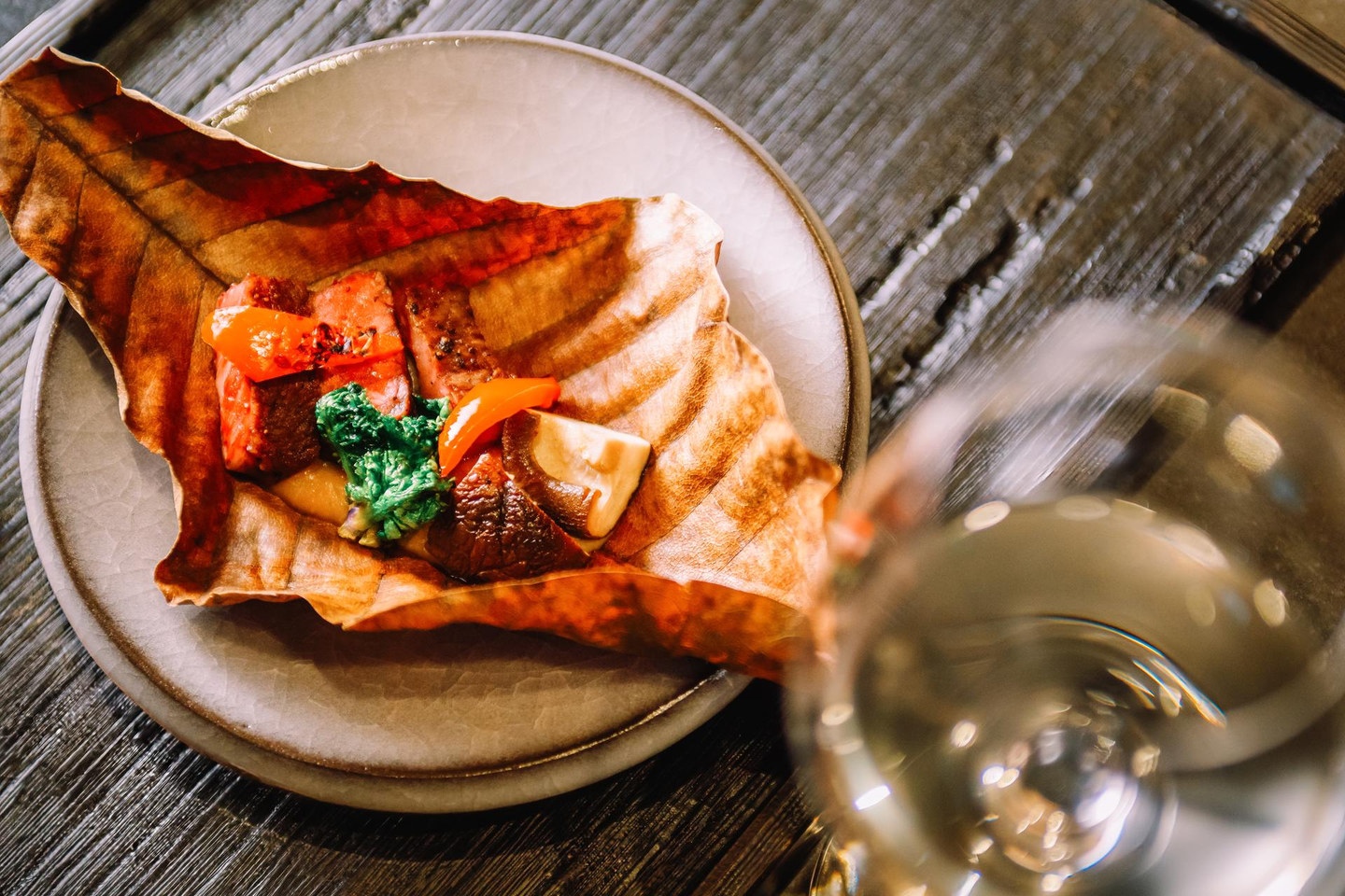 メニューは、SUMIの炭火焼きおまかせコース『燈(ともしび)』。繊細な味わいの料理に、日本酒の香りや旨みが重なり合い、口の中で立体的なハーモニーを奏でます。