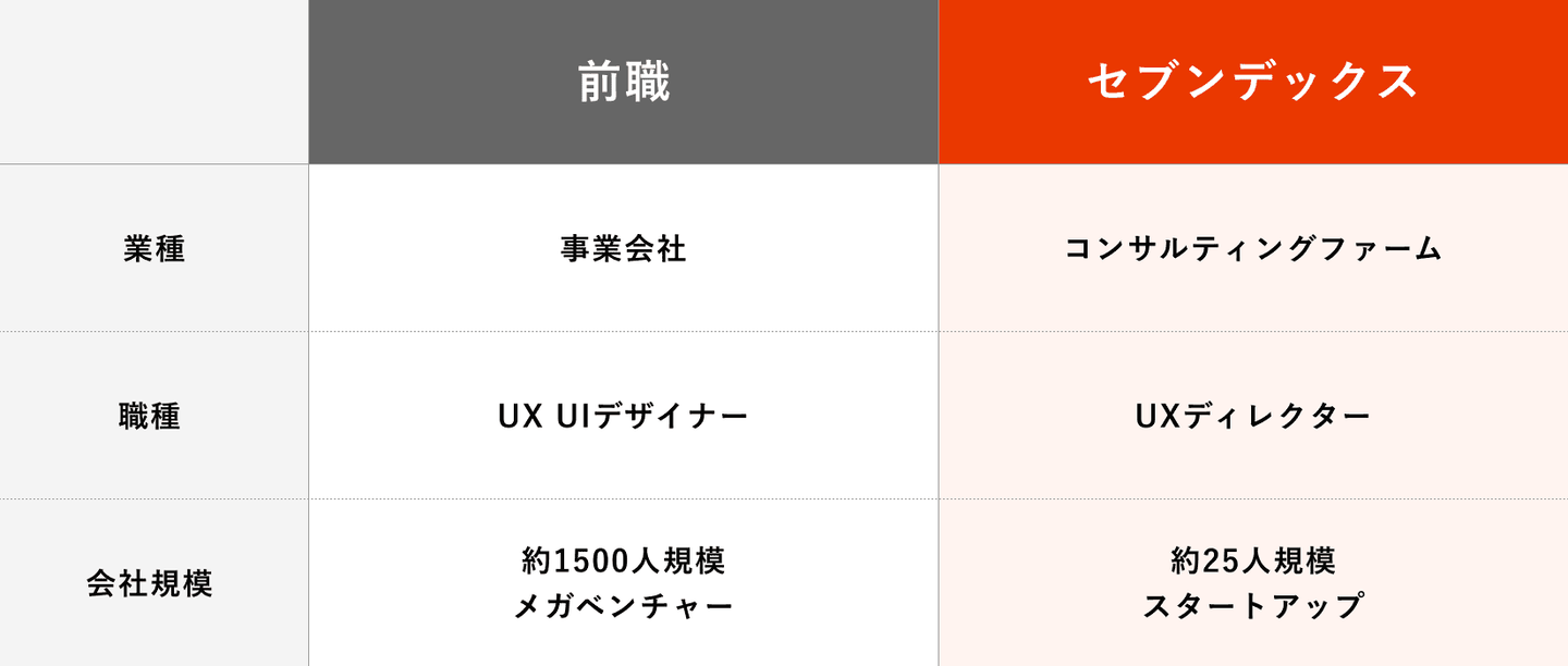私は2023年の5月にセブンデックスに中途入社しました。以前は事業会社でUXUIデザイナーとして働いていたので、入社1ヶ月で感じた違いをお伝えしていこうと思います。