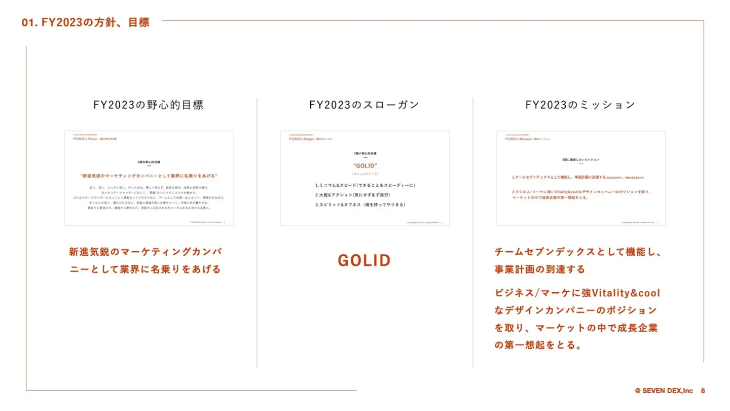 2023年9月29日(金)、セブンデックスでは第5期総会を実施いたしました!第5期総会は、今期の振り返りをはじめ、来期方針発表、メンバー全員への通知書配布、表彰式、来期の展望をメンバーと語り合うLODGE(懇親会)などコンテンツが盛り沢山でした!