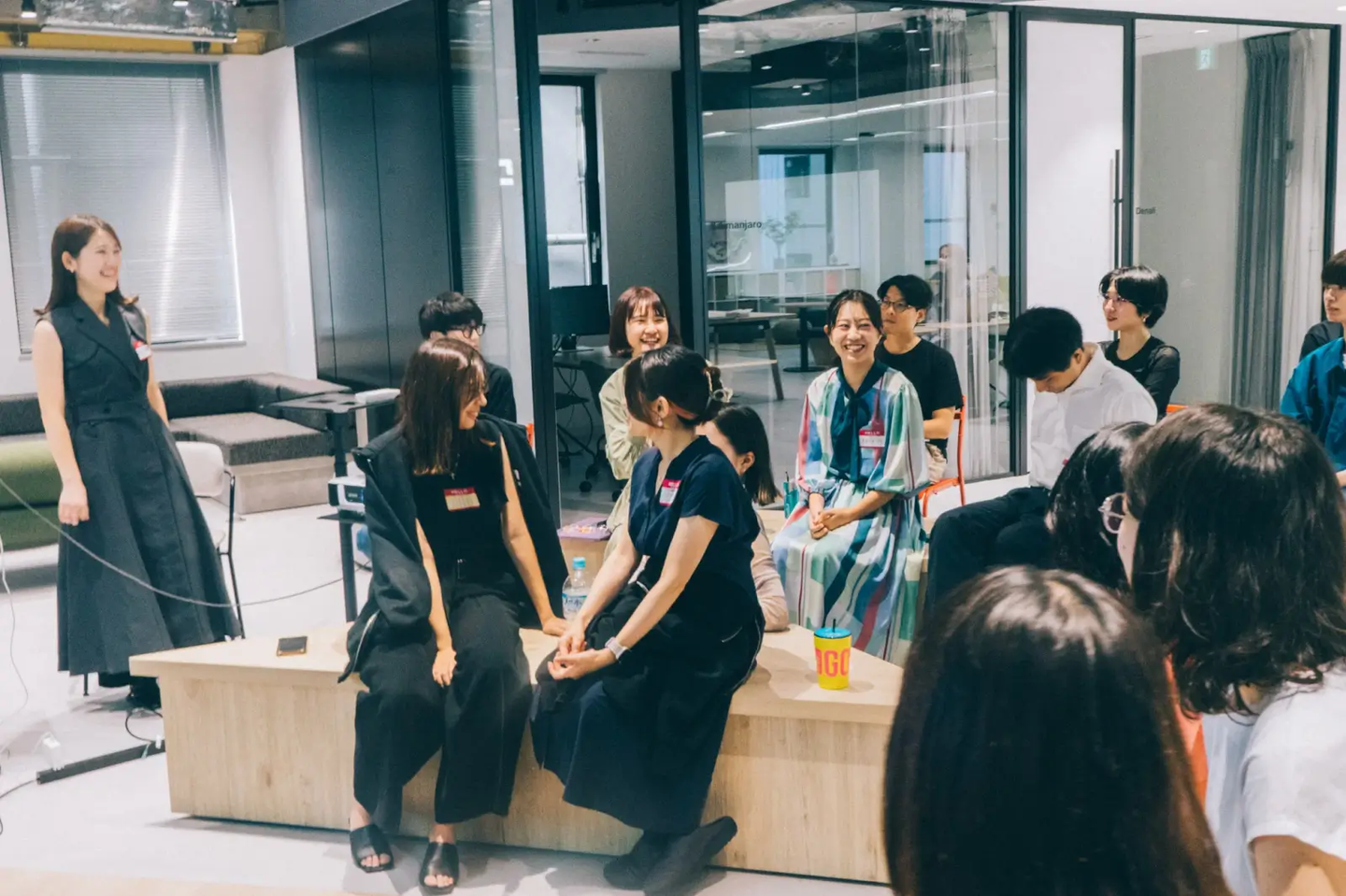 全メンバー、来期の意気込みを書いたシールを胸に貼って、参加!この日のドレスコードは“1番お気に入りの服”