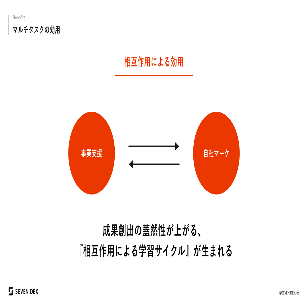 一方で戦略的にマルチタスクをこなせば、それぞれのタスクが成果を創出する蓋然性があがり、『相互作用による学習サイクル』が生まれると考えています。