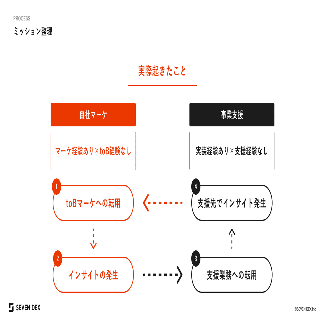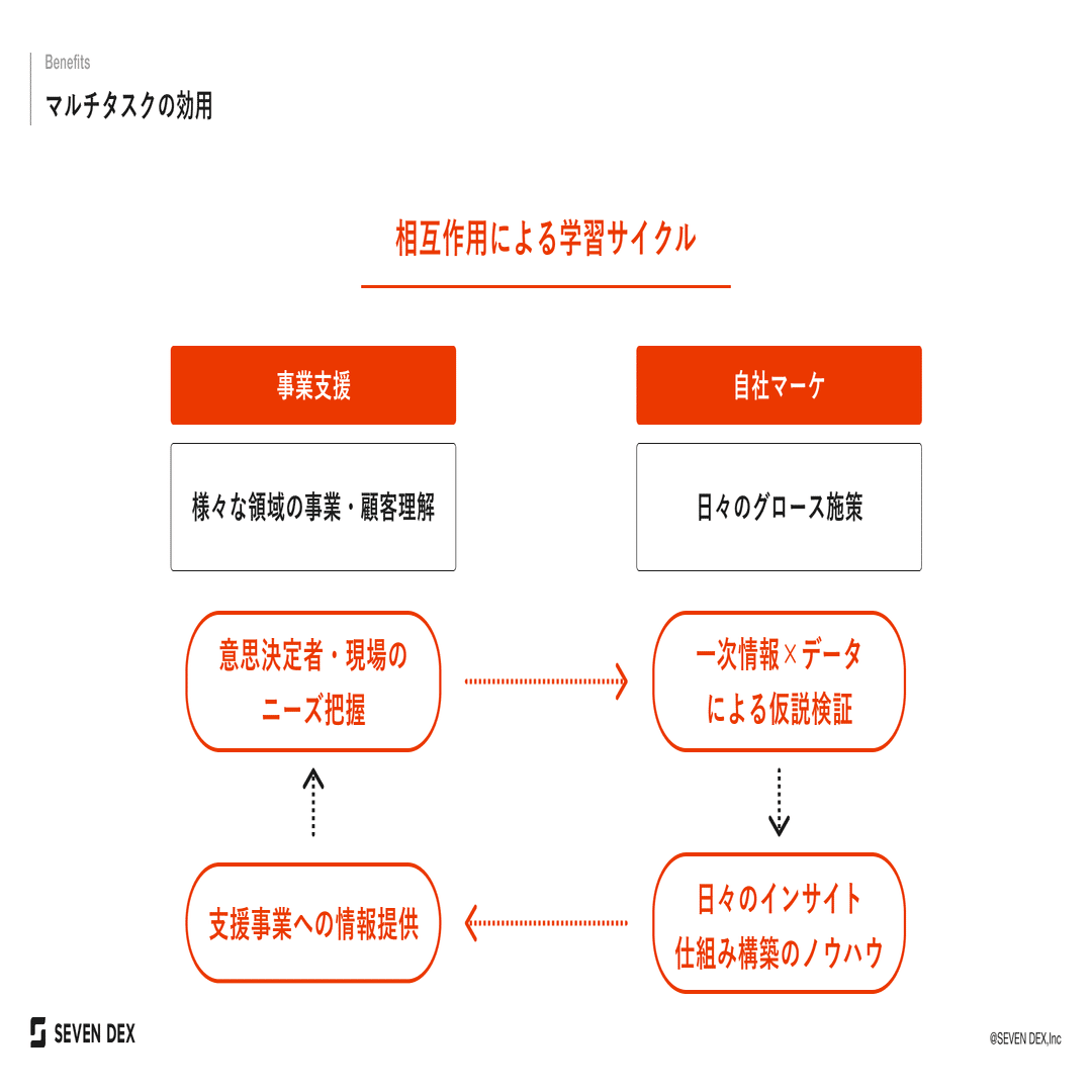 支援先で新しく生まれたインサイトを自社マーケの施策に活かすことで学習サイクルが回っていきます。