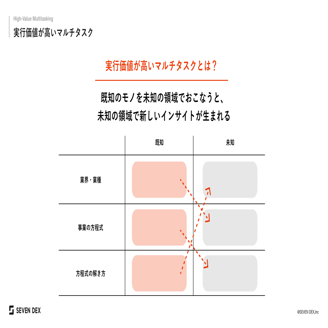 改めて『戦略的マルチタスク』とは、既知と未知のタスク同士の相互作用による、価値創造までの流れを意図的に生み出すタスクマネジメントのことを指します。