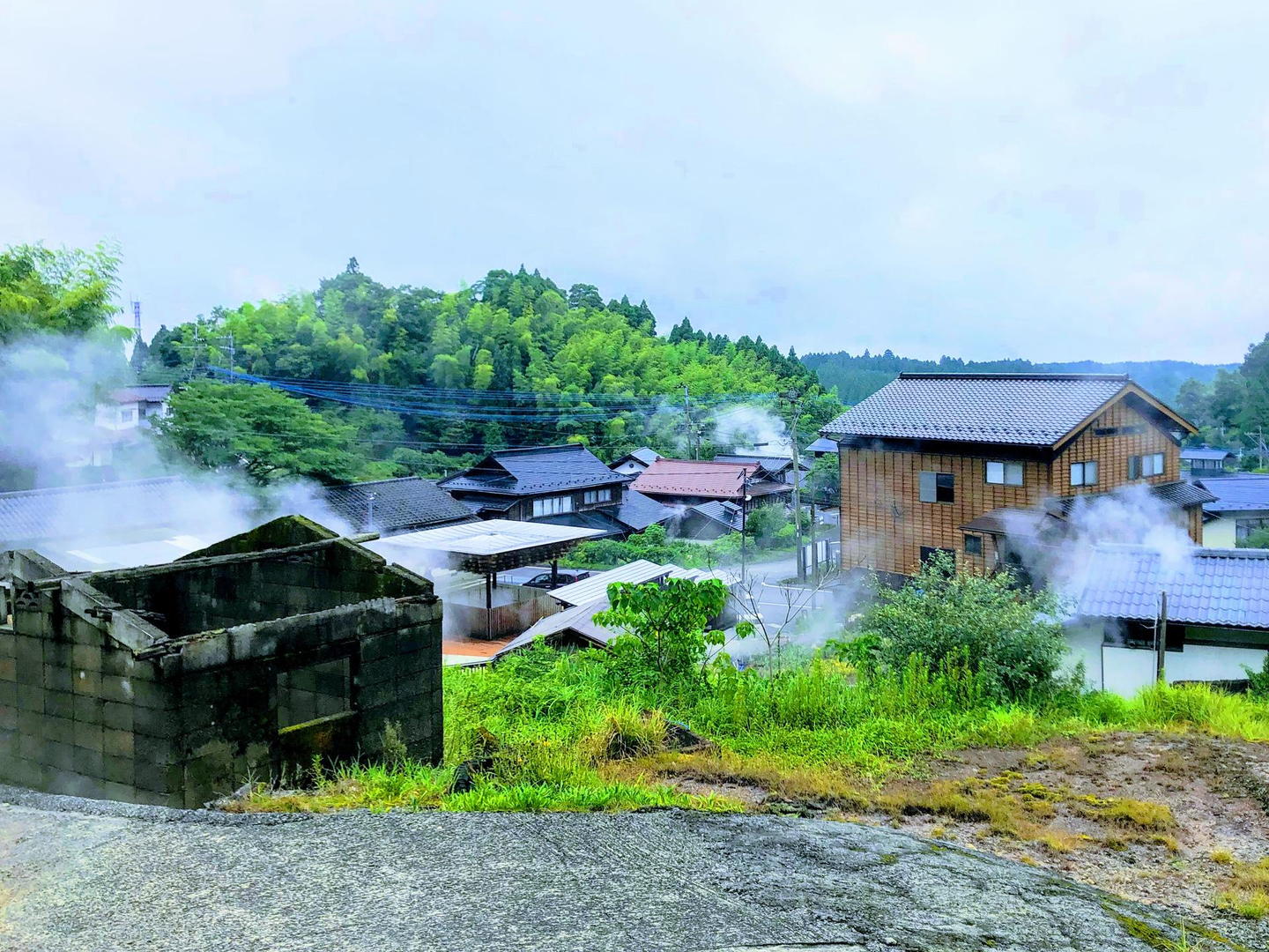 日常生活の一部に蒸気がある。小国町の大きな特徴だと感じます。民家と民家が立ち並ぶ景色の中に蒸気も共にある。蒸気と暮らしが密接にあります。