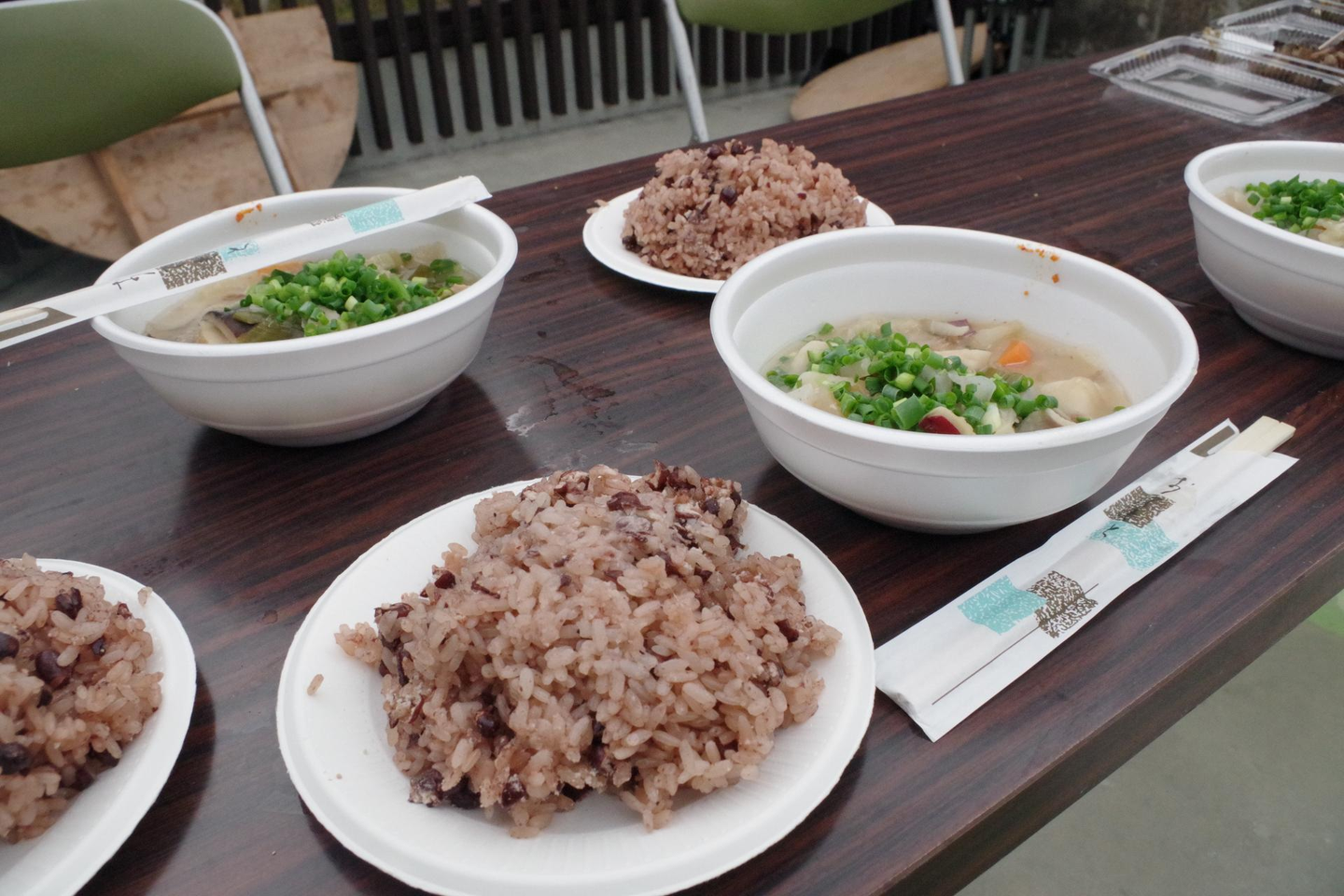 豚汁やお赤飯も無料でご提供。