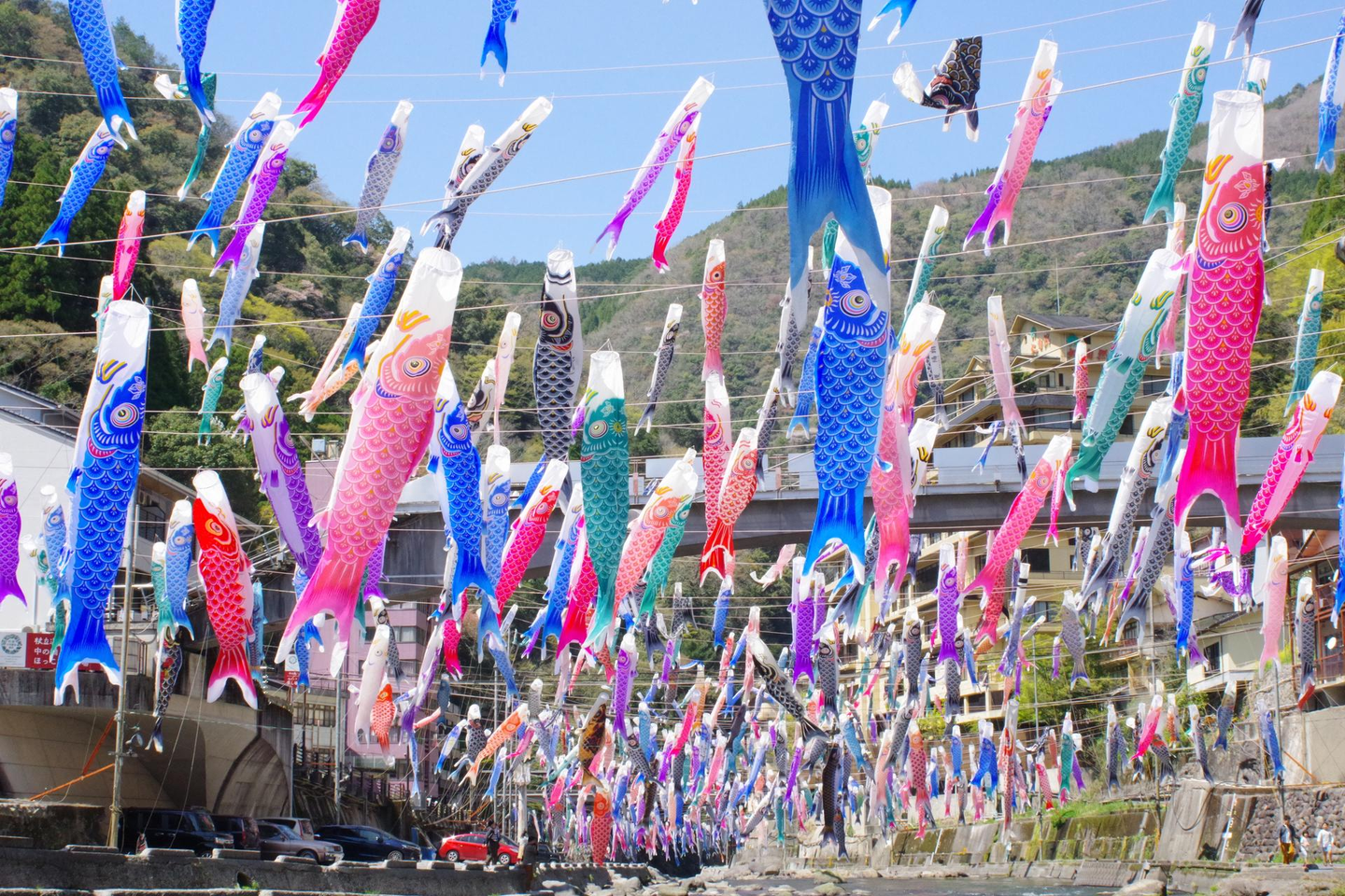 今年は4月1日~5月6日まで実施されているそうで、渓谷沿いに、3000匹以上の鯉のぼりがそよそよと泳いでいる風景は言葉を失うほどの幻想的な風景でした!