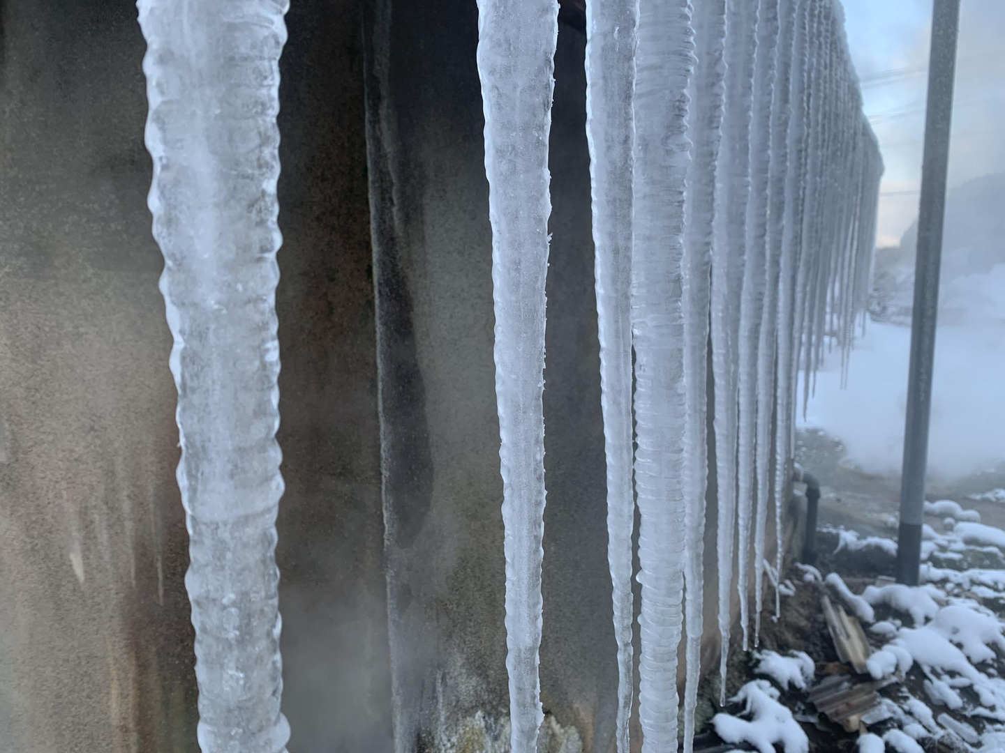 氷柱も30センチ以上となったときも。この時期はスタットレスタイヤ必須でした。