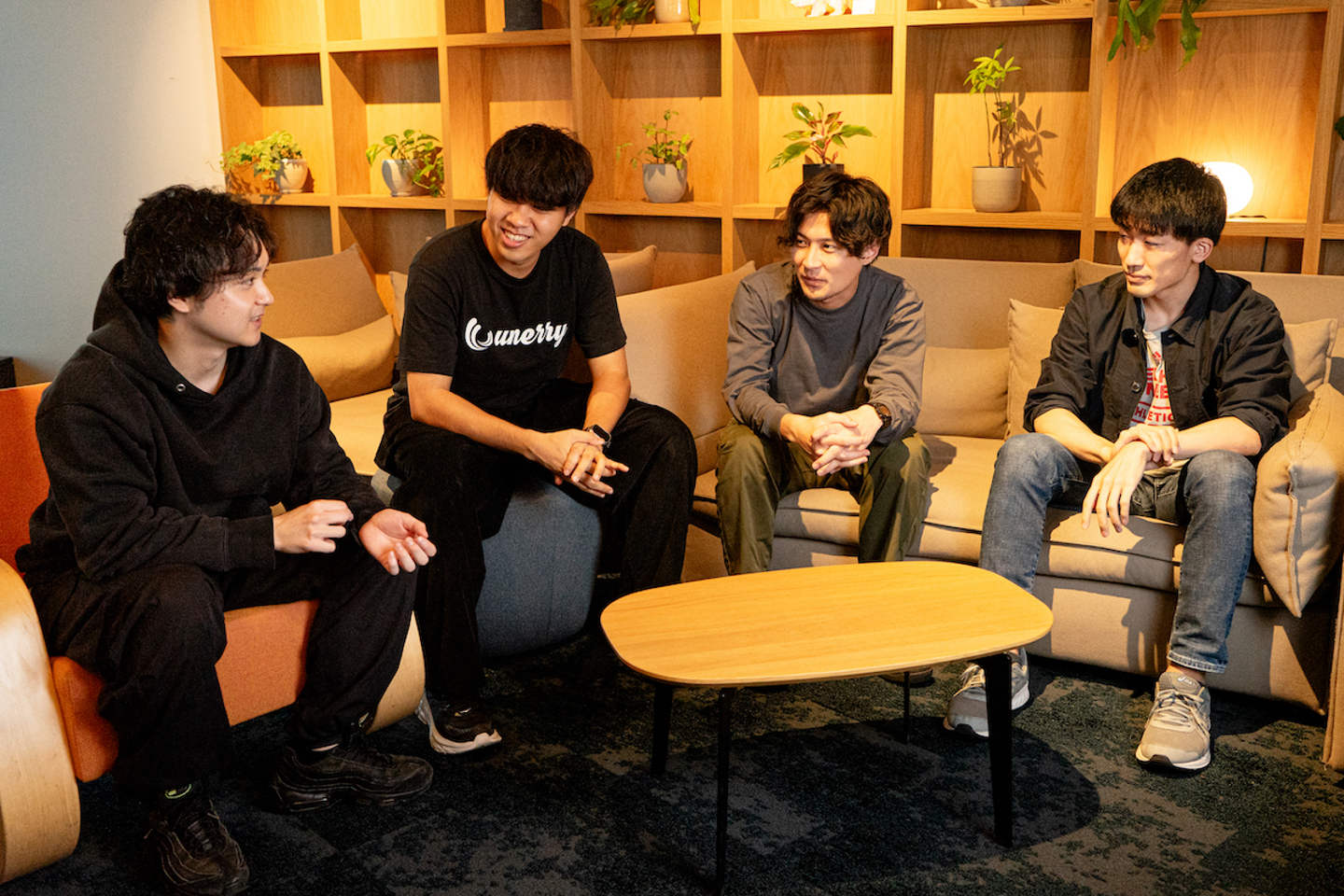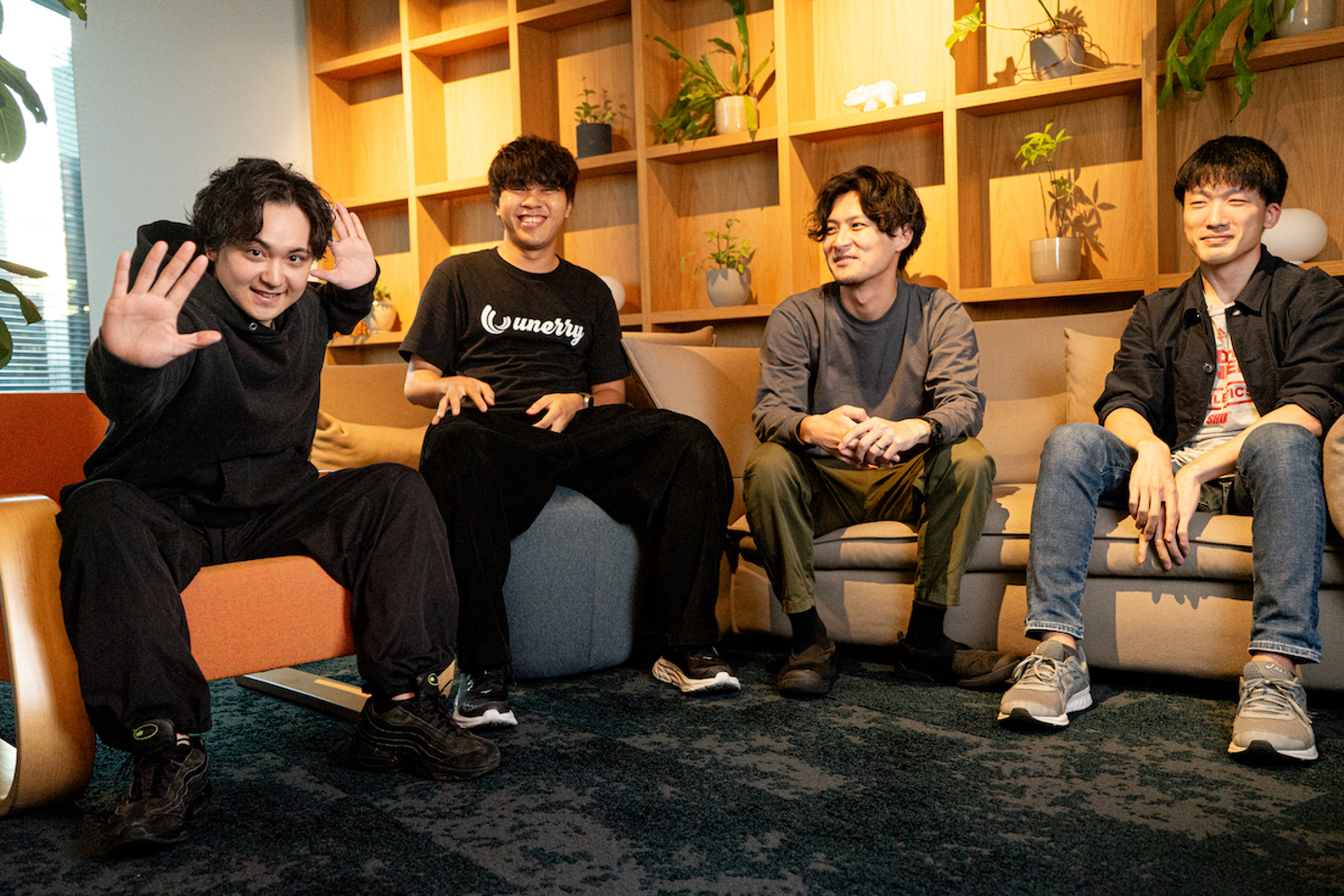 今回ご紹介するのは「プロダクト開発チーム」に所属する、2023年入社のほぼ同期 & ほぼ世代の4人のメンバー。unerryに入社のワケや、とある日の1日のスケジュール、そしてチームリーダーの印象などを語ります。