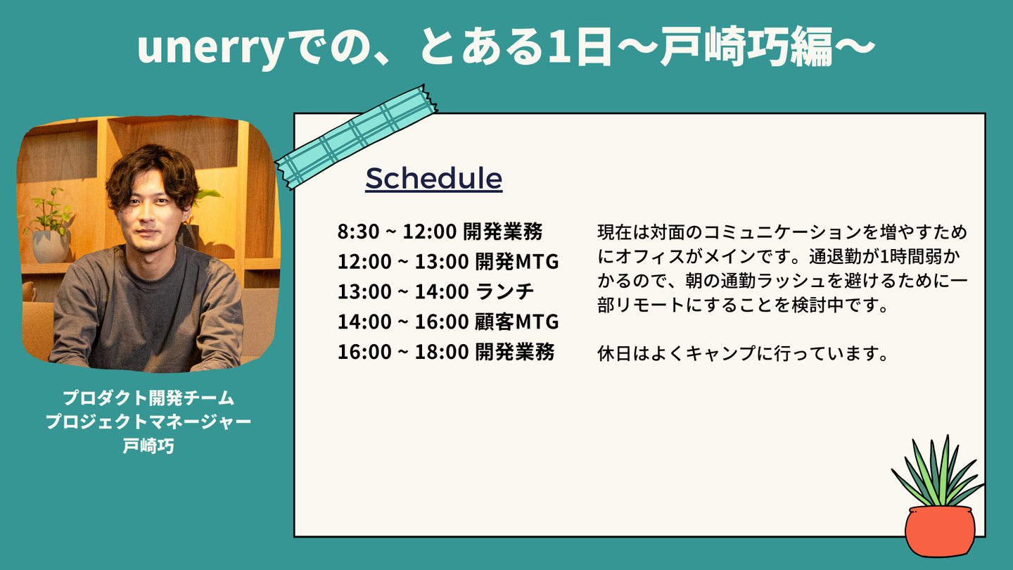 プロダクト開発チーム プロジェクトマネージャー 戸崎巧(とさきたくみ)