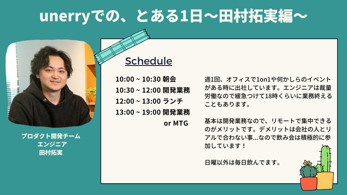 プロダクト開発チーム エンジニア 田村拓実(たむら たくみ)