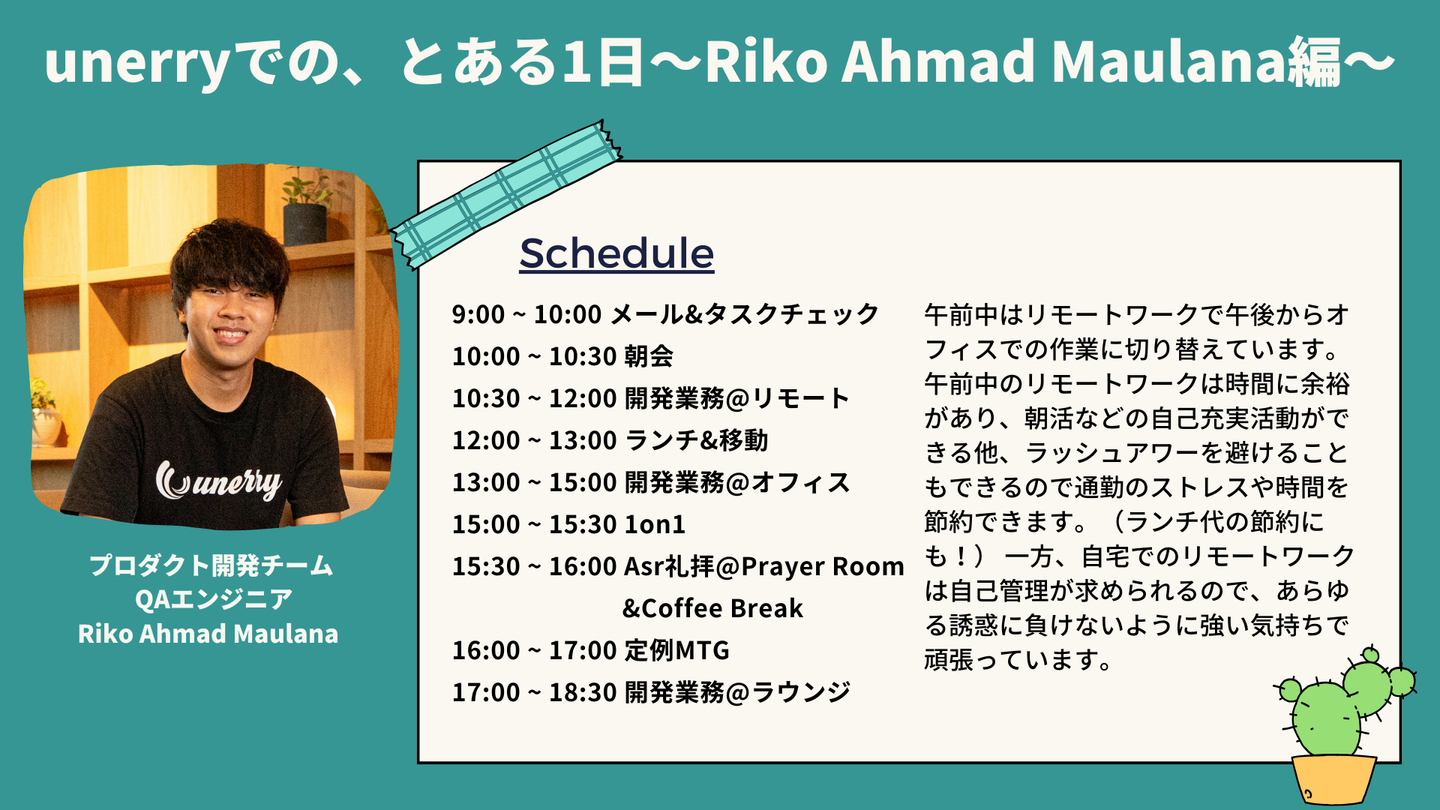 プロダクト開発チーム QAエンジニア Riko Ahmad Maulana (リコ アハマド マウラナ)