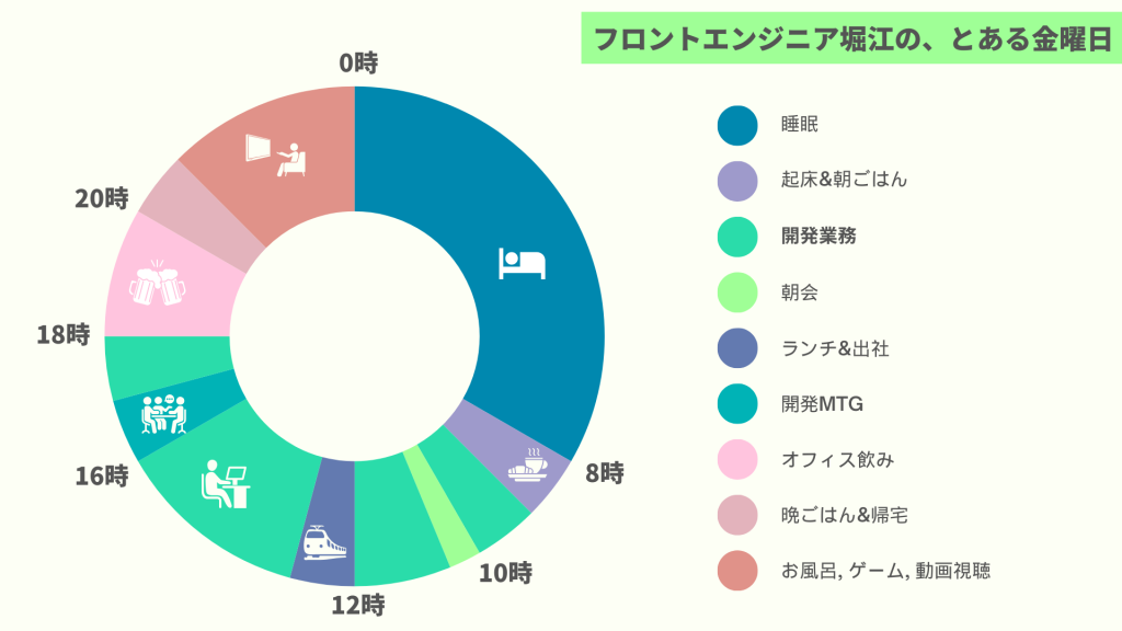 金曜日の例ですが、こんな感じです。午前中は自宅で仕事して、ランチがてら出社。午後からはオフィスで作業をすることが多いです。