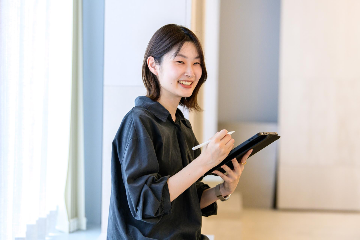 建築士の父に影響を受け、空間デザインの道へ。ユニバーサルデザインの視点を大切に、誰もが使いやすい空間を創造する。入社2年目、初めて手掛けた案件が完工でき、大きなやりがいを実感している。