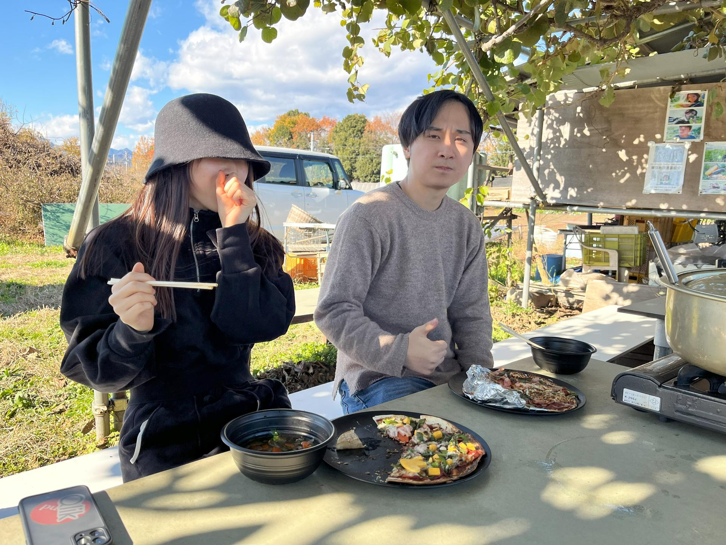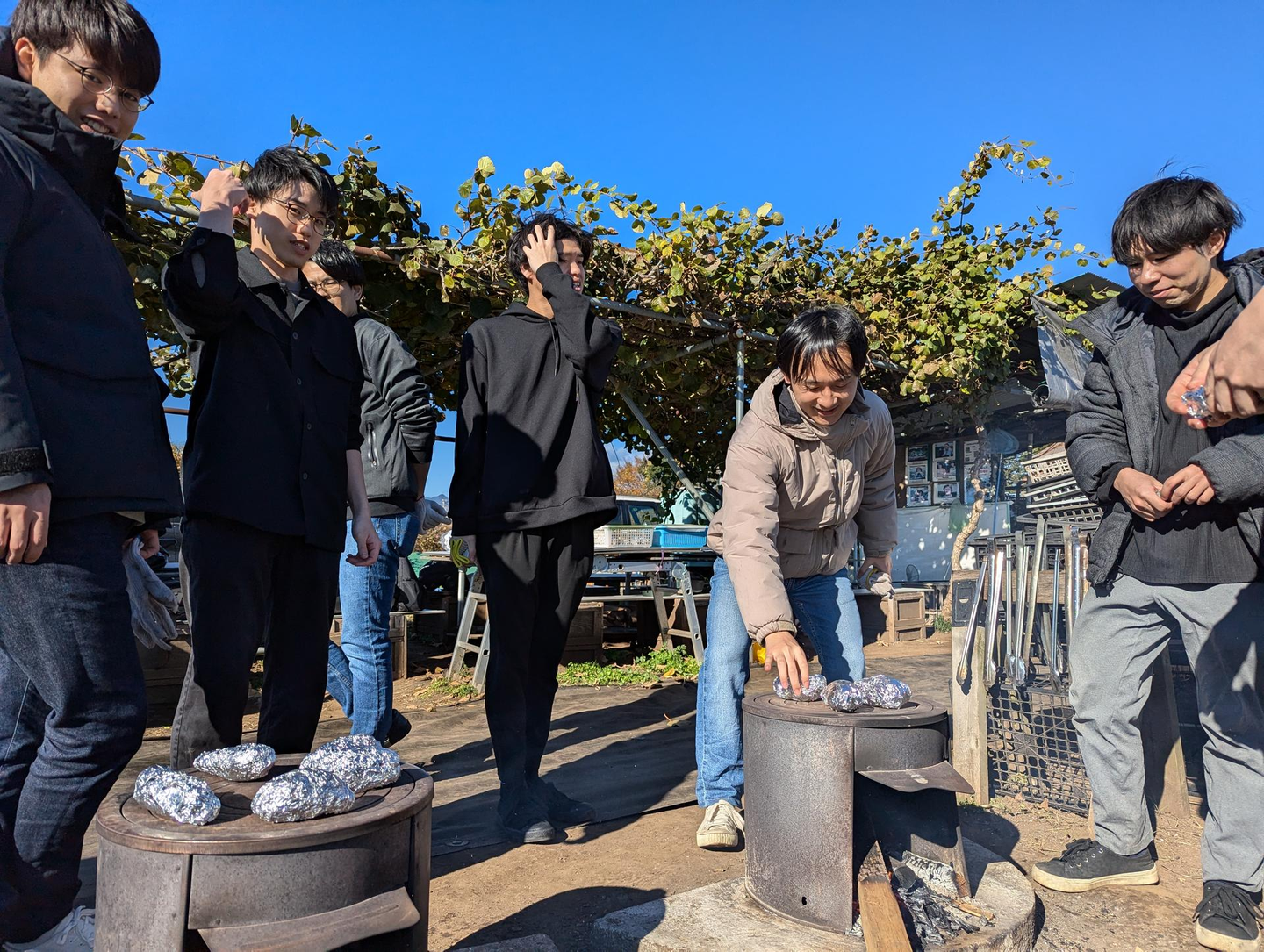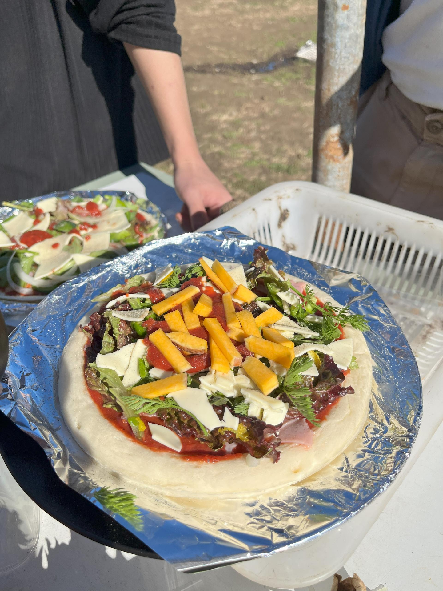 昼食は農園野菜を収穫させていただき、ピザと焼き芋を作りました。一人ひとりがオリジナルのトッピングを楽しみ、MYピザを作っていました。朝にセットしておいたさつまいもは、ホクホクに焼けて絶品でした!