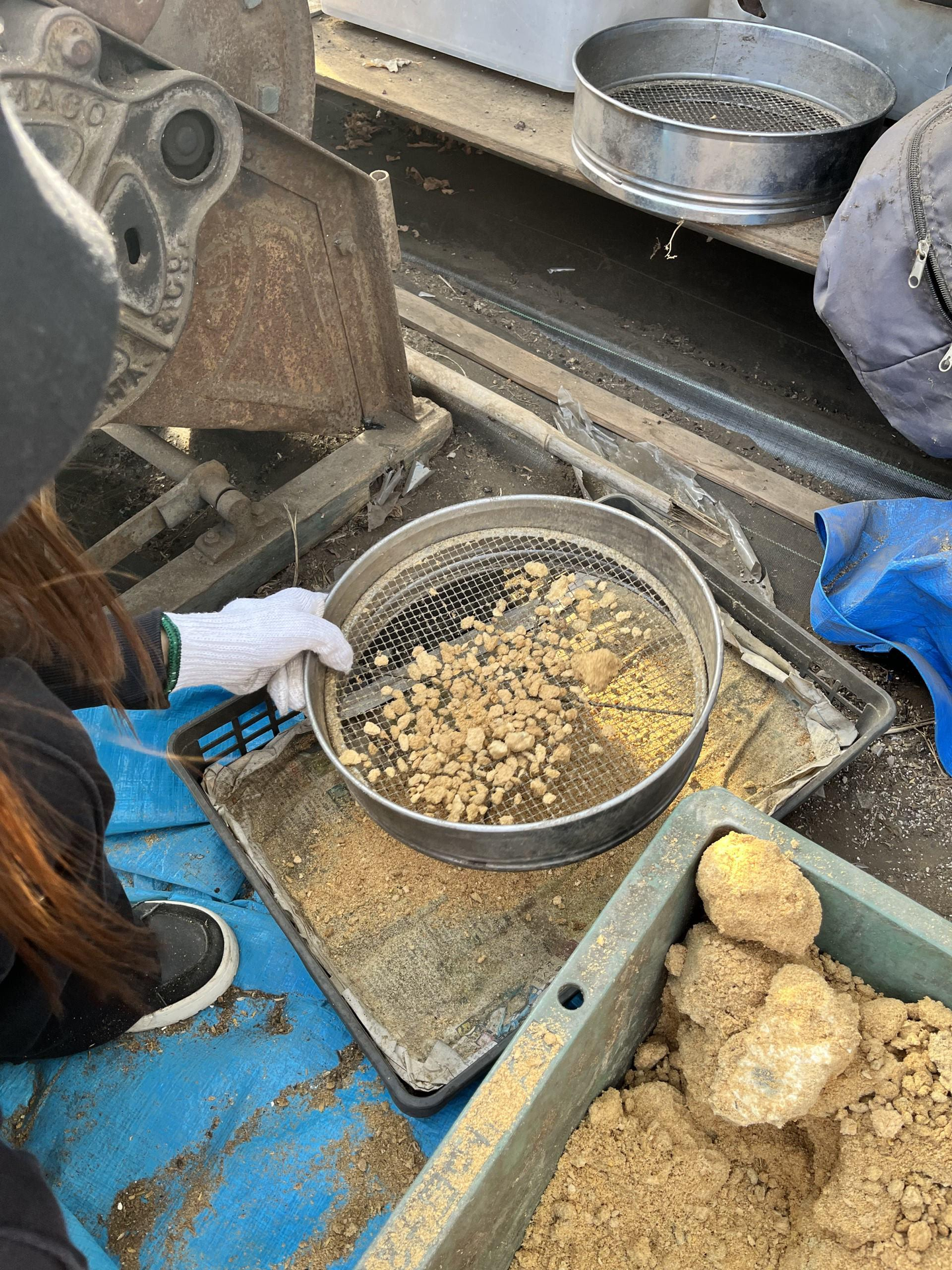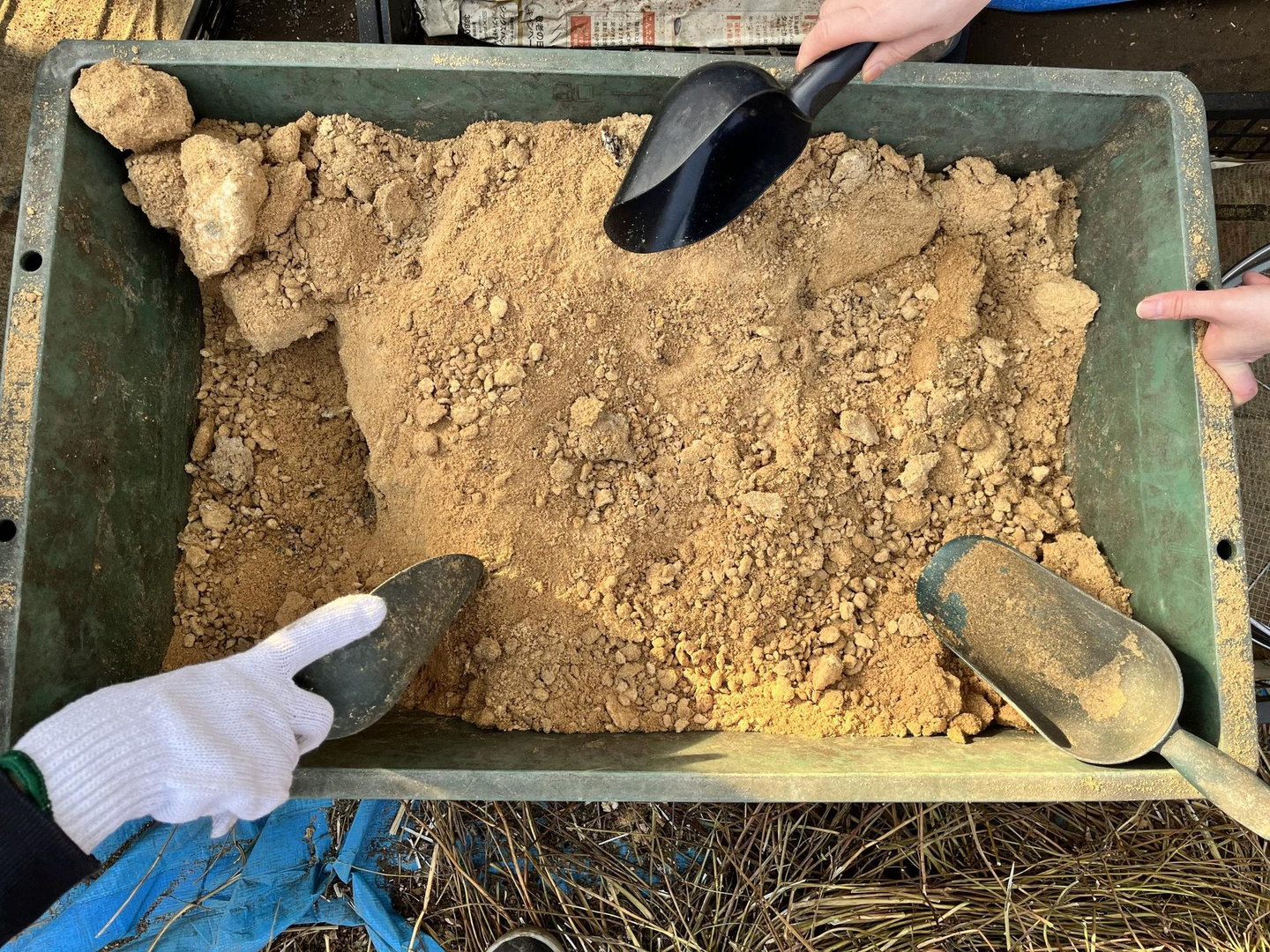 私たちはEMぼかしの素から不要なカビや虫を取り除き、粉末状にして乾燥させる作業を行いました。この発酵資材を生ごみに使用すると、短期間で肥料に変えることができます。ごみの減量に繋がることから、自治体様でも各ご家庭への利用を推奨されていると伺いました。
