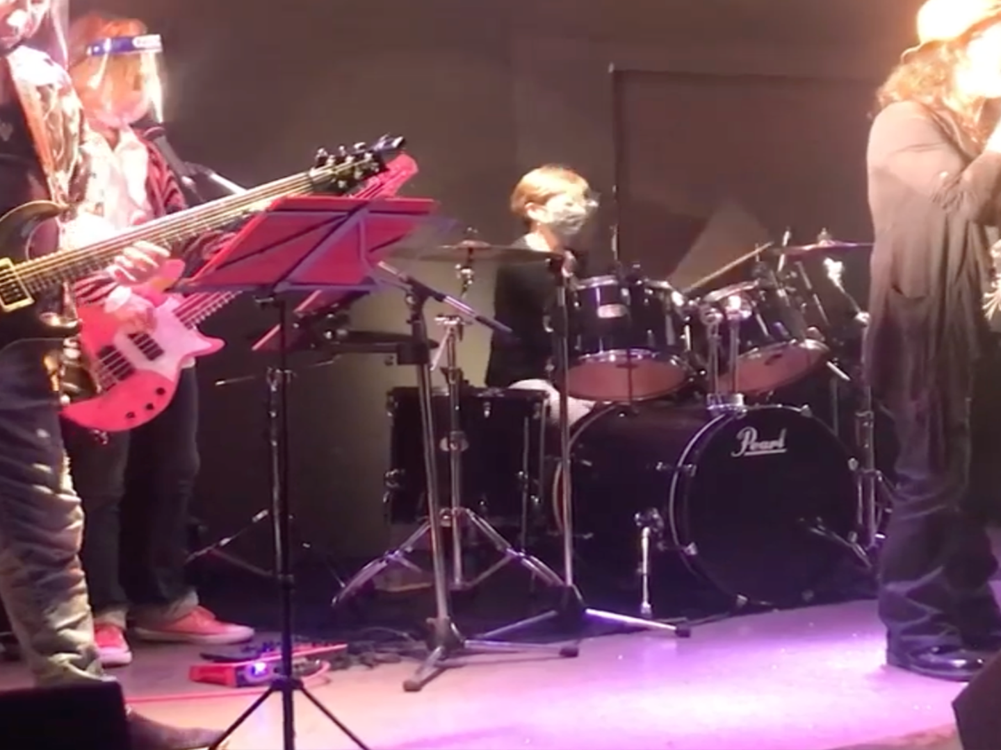 ドラムレッスンを受けたきっかけは、2019年、社員の皆さんから誕生日にもらった体験型カタログギフト。その中にあったのがドラム体験レッスンでした。1回だけのつもりが、あまりにワクワクしてそのまま受講生に。写真は2022年5月に町田のライブハウスで行った発表会の模様。私以外は講師の先生方です。前日のリハーサルは冷や汗ものだったので、上出来な演奏でした。