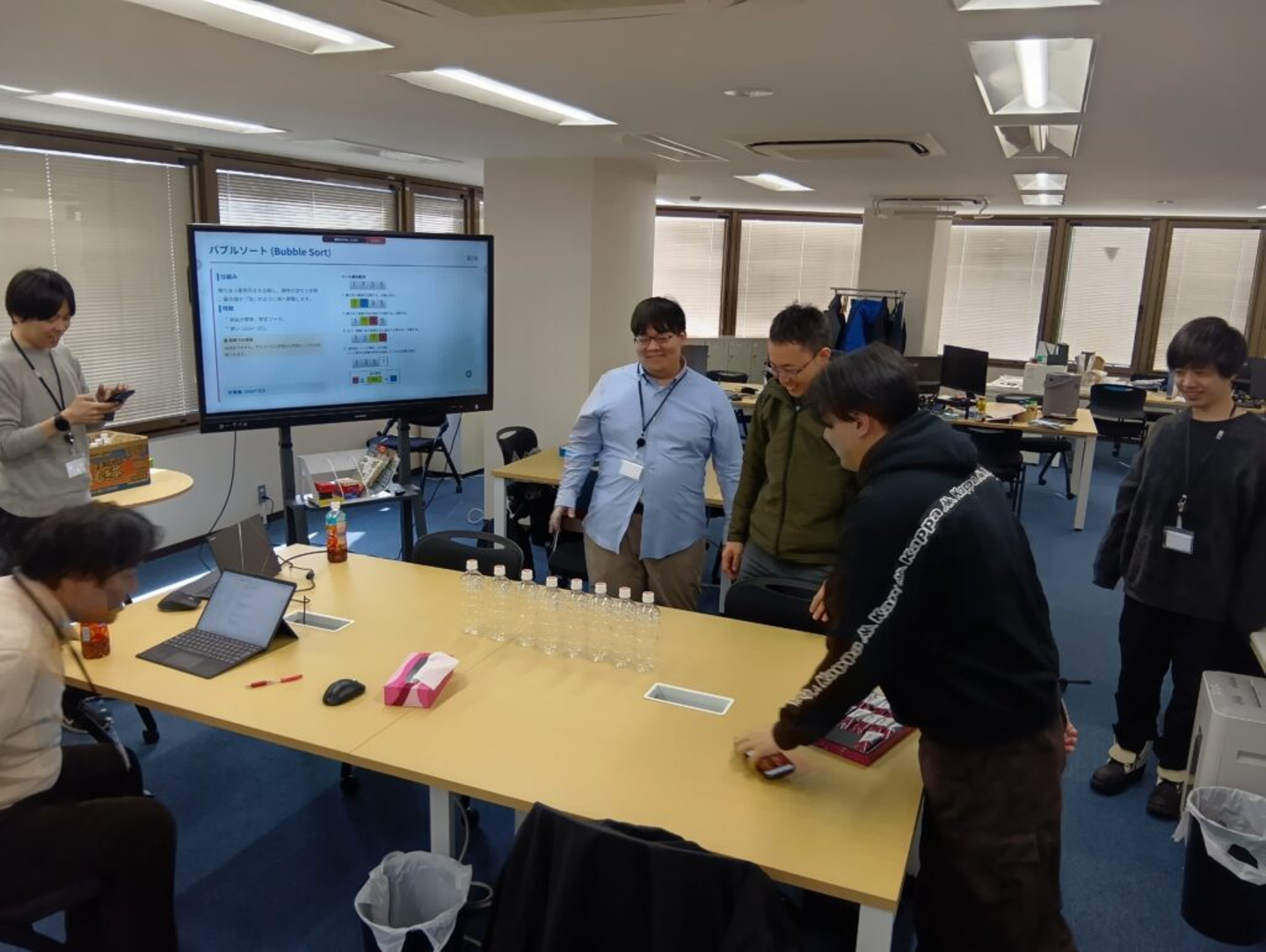 数字が書かれたペットボトルを使って、バブルソート・選択ソート・挿入ソートを実行しました。