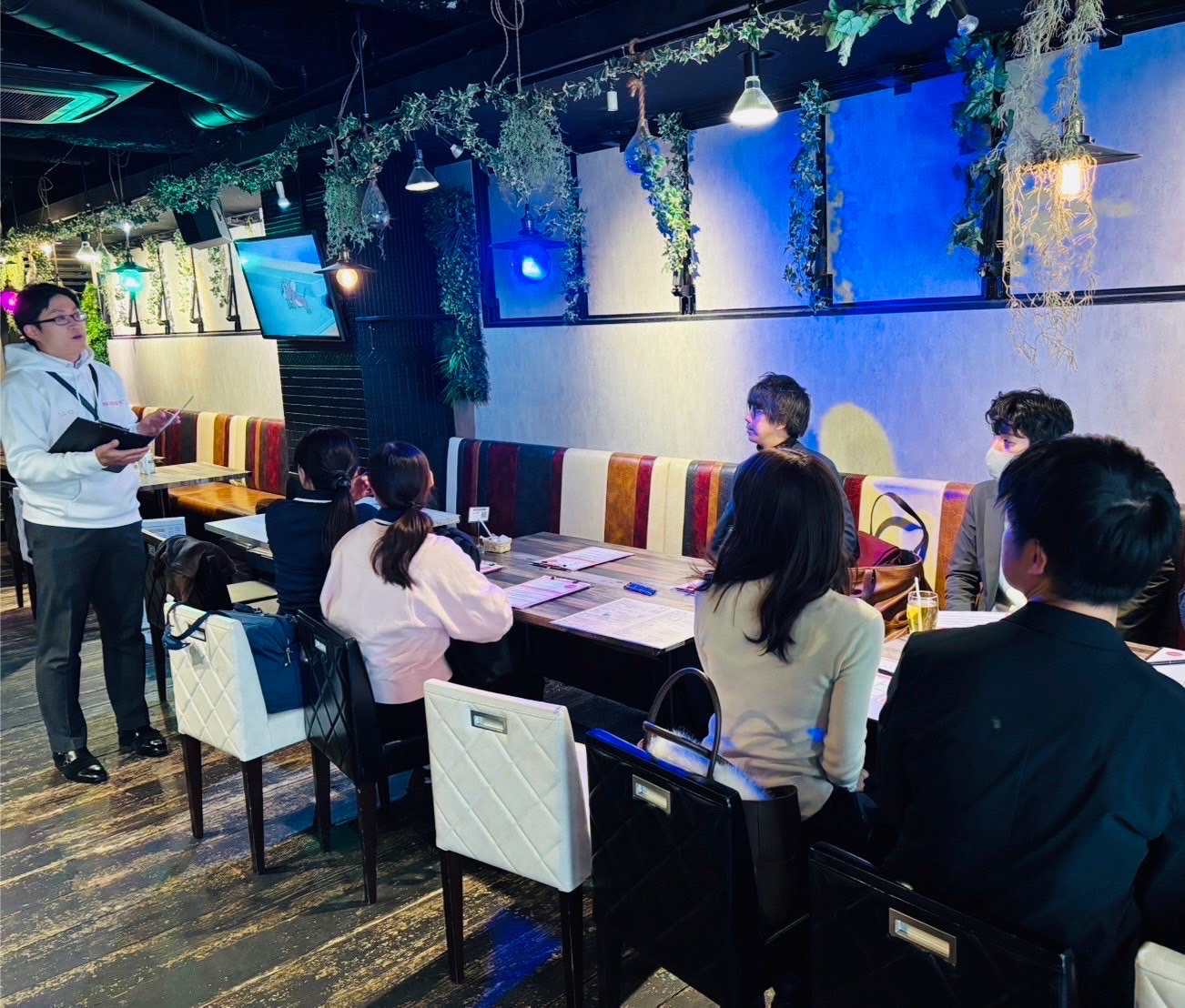 開会のあいさつ・進行説明→プロフィールシート記入→法人企業紹介(1社5分程度)→グループごとに会話→アンケート記入→閉会