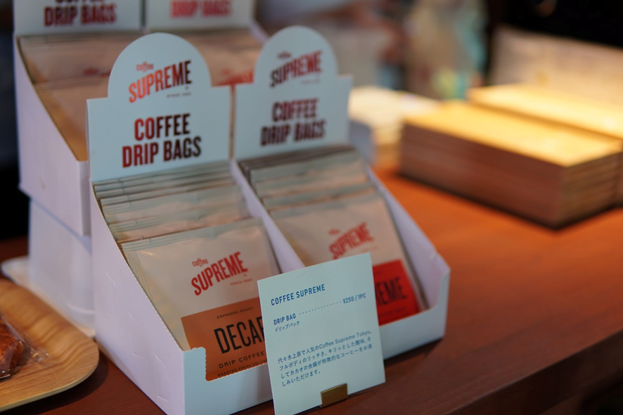 ▲ニュージランド発、大人気コーヒースタンド Coffee Supreme Tokyo の豆を使用した美味しいコーヒーを提供。季節ごとに異なる豆を加えることで、四季折々の味が楽しめる工夫も。