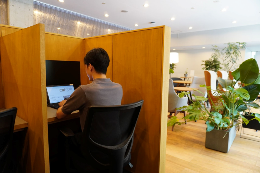 ▲こちらの区切られたスペースは、集中して仕事をしたい方にぴったり!状況に応じて、ラウンジの区画を使い分けできるのが嬉しいですね。