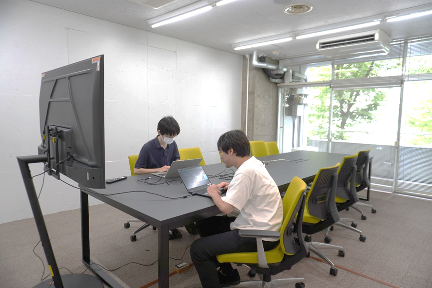 ▲機密性の高い情報を扱う打ち合わせの際には、こちらの会議室が利用可能。大画面のモニター完備で、打ち合わせも捗ります。