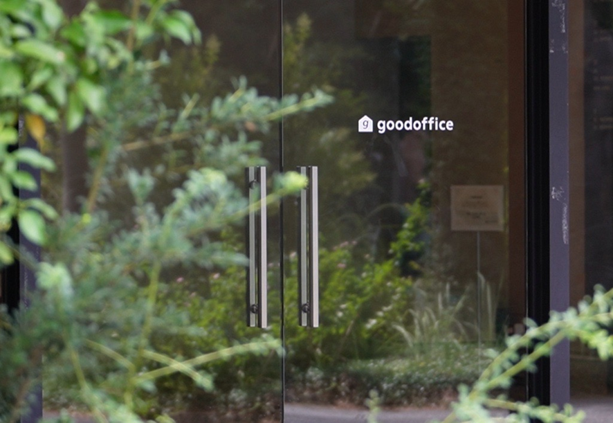 ▲こちらは建物のエントランス。goodofficeのロゴが皆さんをお出迎えします。早速中に入ってみましょう。