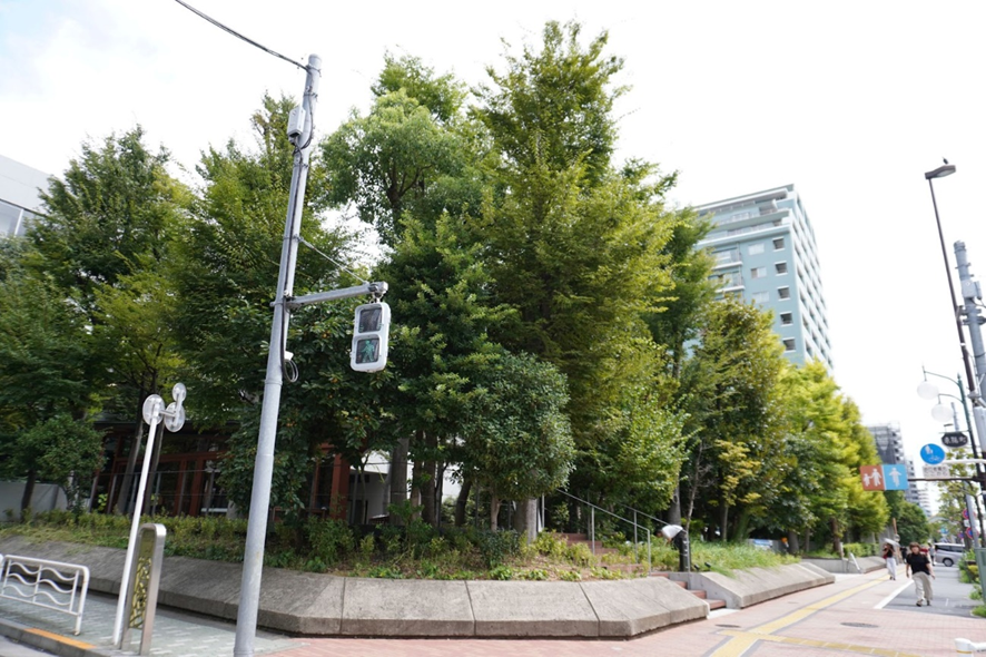 東陽町駅から東側に歩くこと、約2分。美しい緑が広がる光景が見えたら、そこが私たちの働くオフィスです。