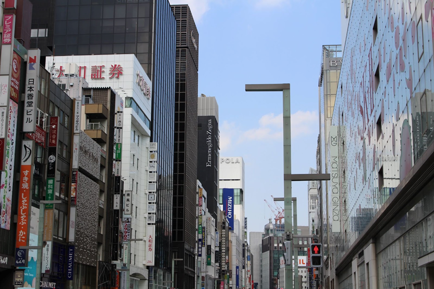 ▲5分ほど歩くと、銀座の大通りが見えてきます。飲食店や百貨店、ファッションビルが立ち並び、仕事後も充実した生活が送れそう。