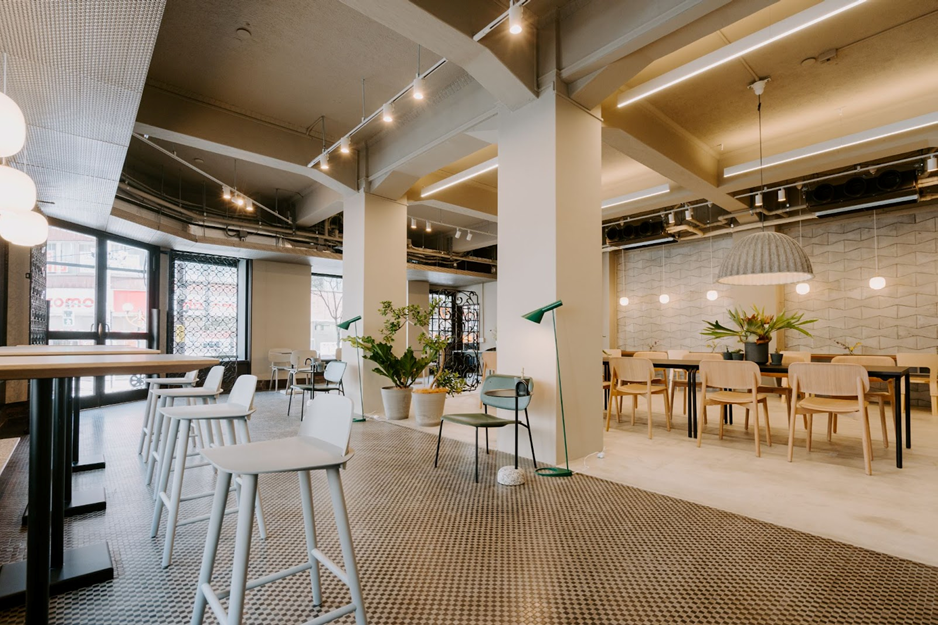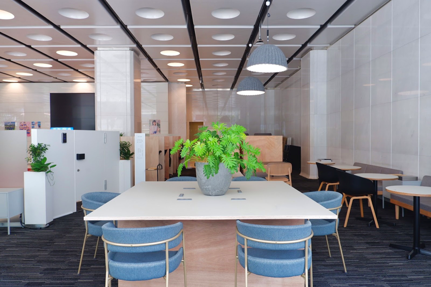 ▲ラウンジ内はフリーアドレスで利用可能。カフェにいるのかと錯覚してしまうような、洗練された空間です。