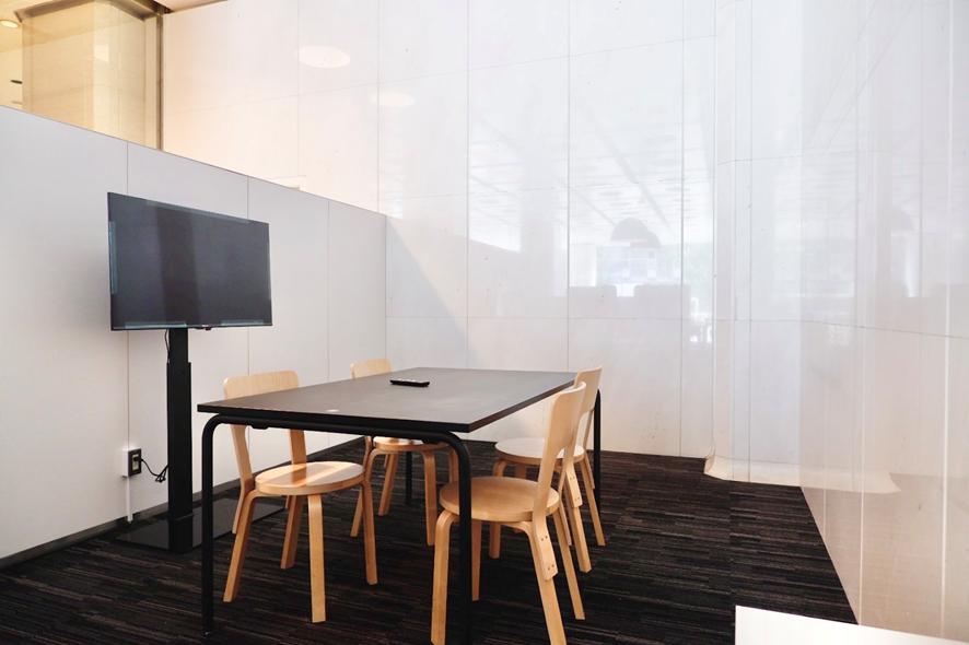 ▲ラウンジの一角にはミーティングスペースも。ちょっとした打ち合わせに最適です。