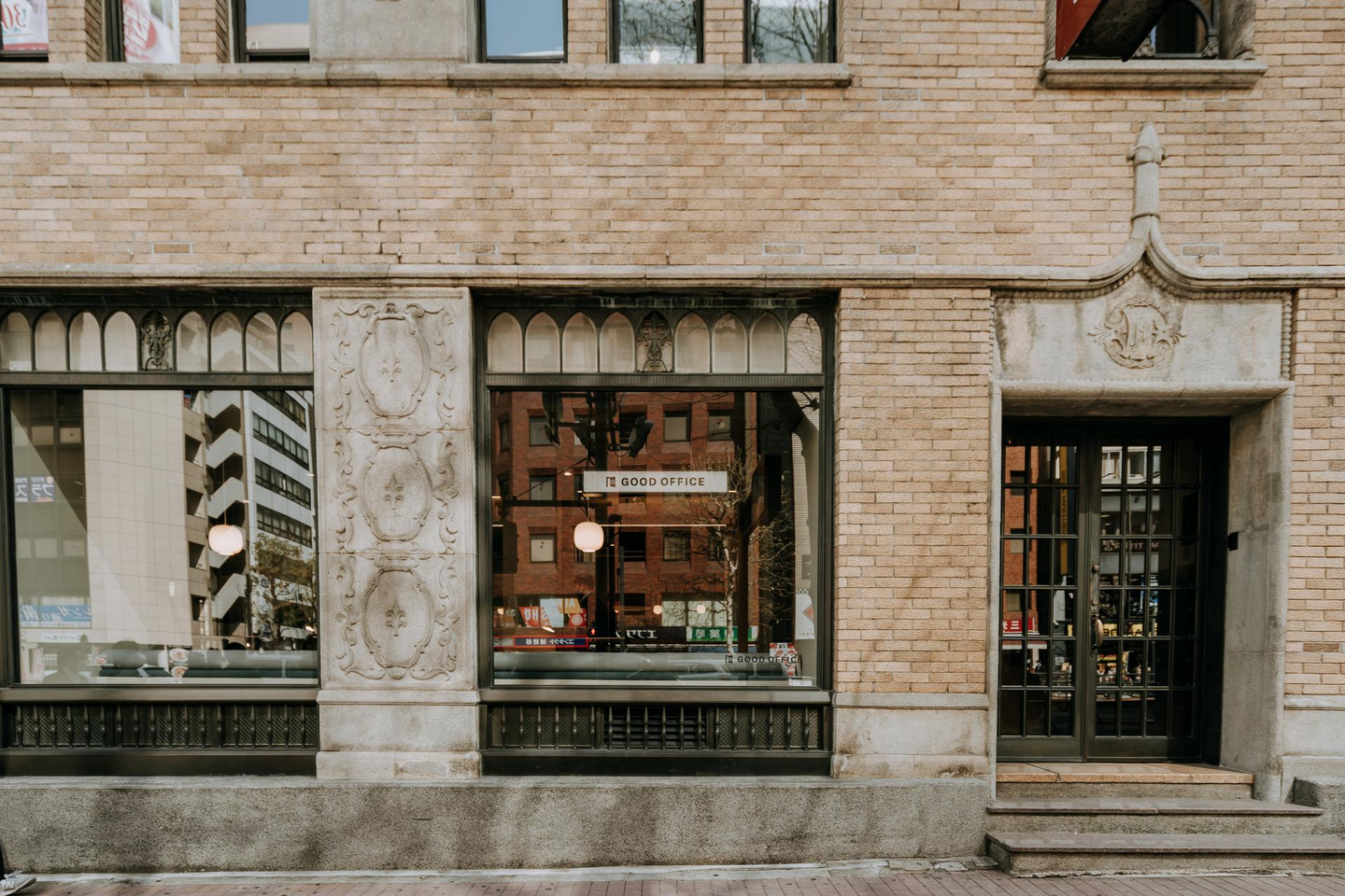 汐留オフィスから15分ほど歩くと見えてくる、重厚感のある建物。実はこちらも、グッドルームが運営するシェアオフィスの拠点の1つ、「goodoffice新橋」。オープンリソースのメンバーはこちらも利用可能です。