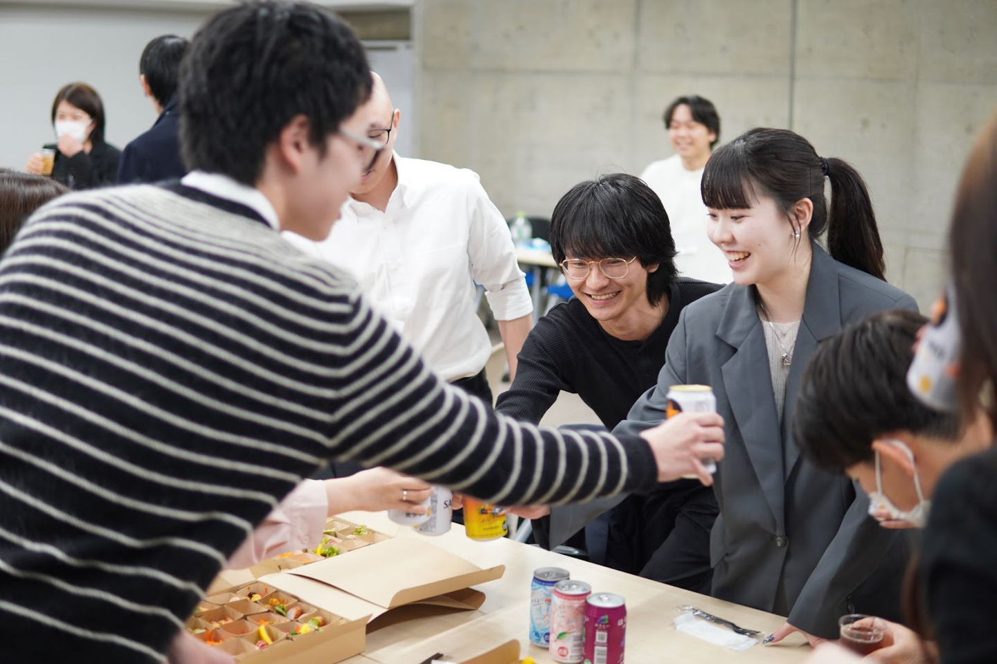 課題発表を終えた直後ということもあり、喜び、達成感、解放感、そして少しの悔しさ――さまざまな感情が交錯する中での乾杯は、2週間の集大成を感じさせる温かなひとときとなりました。