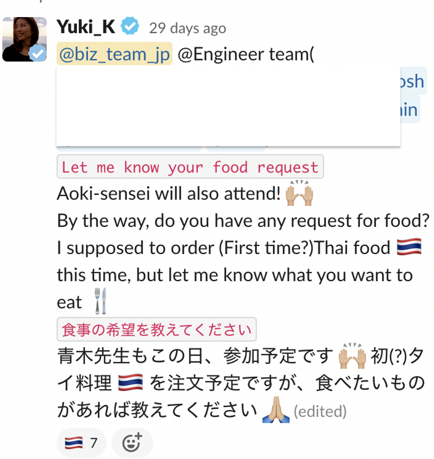 まだ、タイ国籍の社員はいないですが、隣国ベトナムのエンジニアは在籍しているので味も似てるということで・・