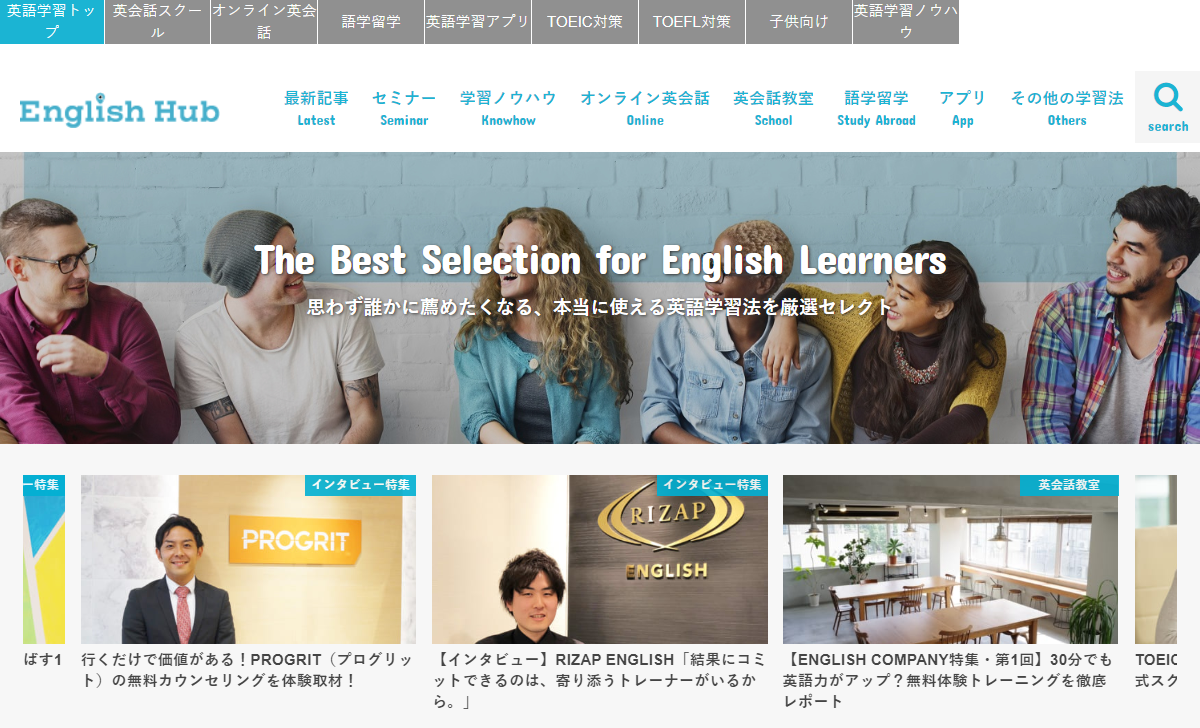English Hubは、英語を学びたい全ての人を支援する英語学習ポータルサイトです。英会話スクール、オンライン英会話、留学、アプリ、書籍、英会話サークル、英会話カフェ、英会話合宿といったあらゆる英語学習方法を一つにまとめ、それぞれの特徴や魅力をお伝えしています。