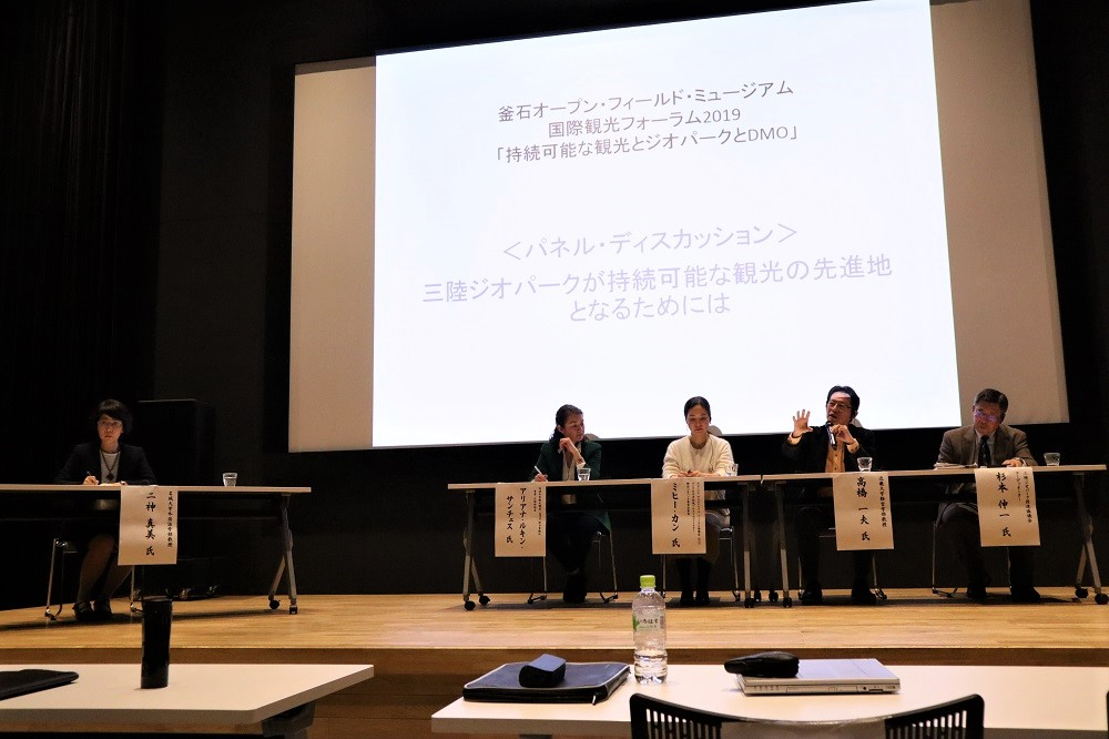 今回のフォーラムでは、国内外から講師が集まり、持続可能な観光の世界の動向や、サステイナブル・ツーリズム国際認証とジオパークの活用事例などが話されていました。講演のほか、「三陸ジオパークが持続可能な観光の先進地となるためには」というテーマのパネルディスカッションもあります。