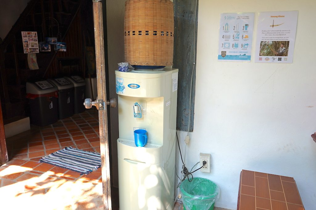 ラオスの町中には、プラスチックボトルを減らす目的で、ホテルやレストランの内外に無料のウォーターサーバーが設置してあります。旅行者にとっても、水を買うお金を節約できるので、大変ありがたいシステムです。
