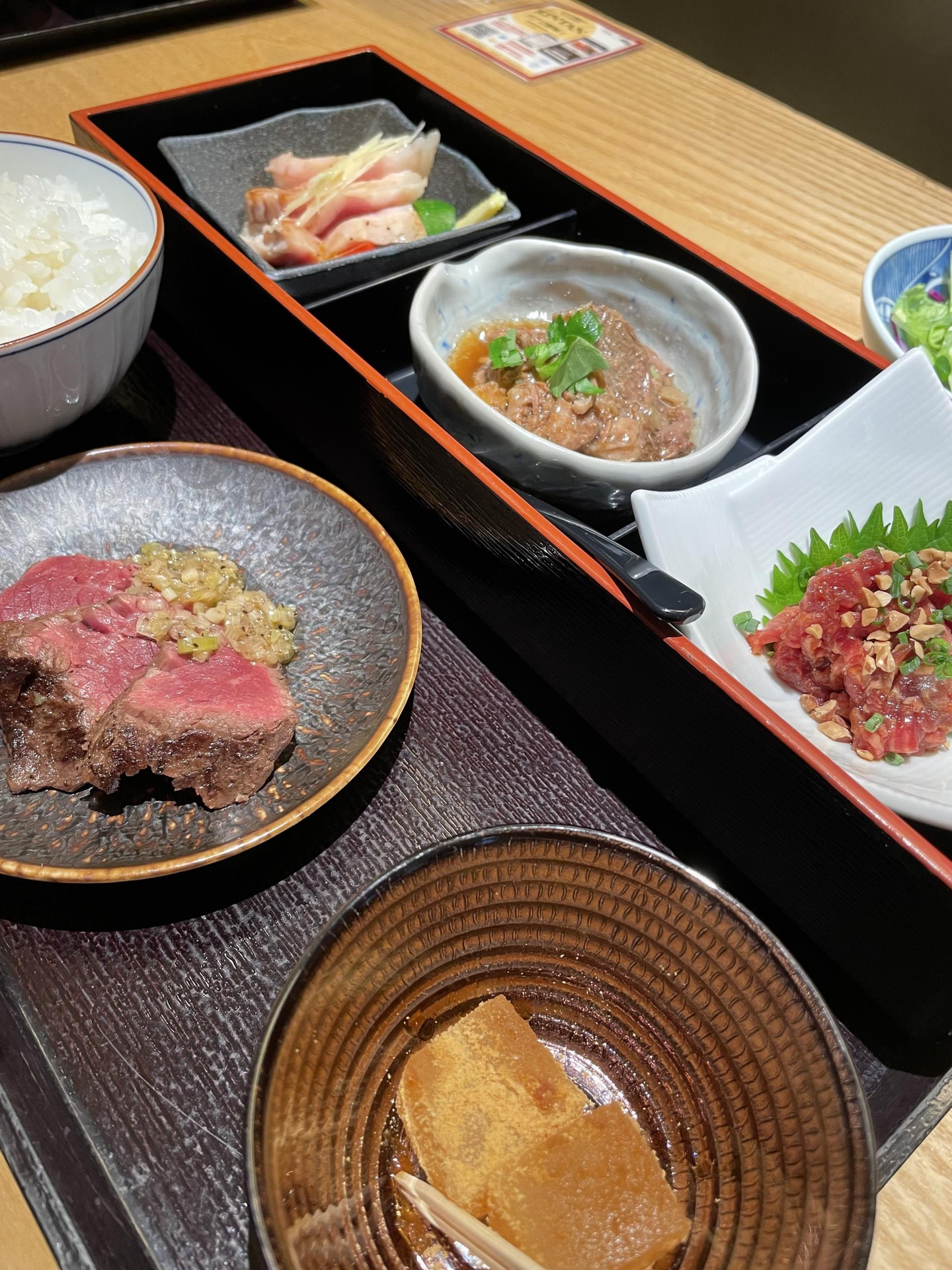 さがり、ユッケ、すじの醤油煮、岩中豚の生姜焼きがセットになった平日13時以降のみ食べられる遅特御前を食べている人が多いイメージですが、何を食べても間違いなくおいしいです!!