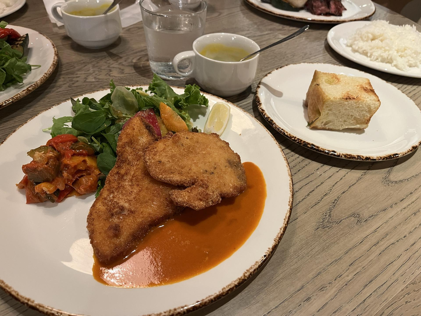 メインセットはおかずを3種類から選べるのでメカジキのフライを選んだのですが衣はサクサクで身は