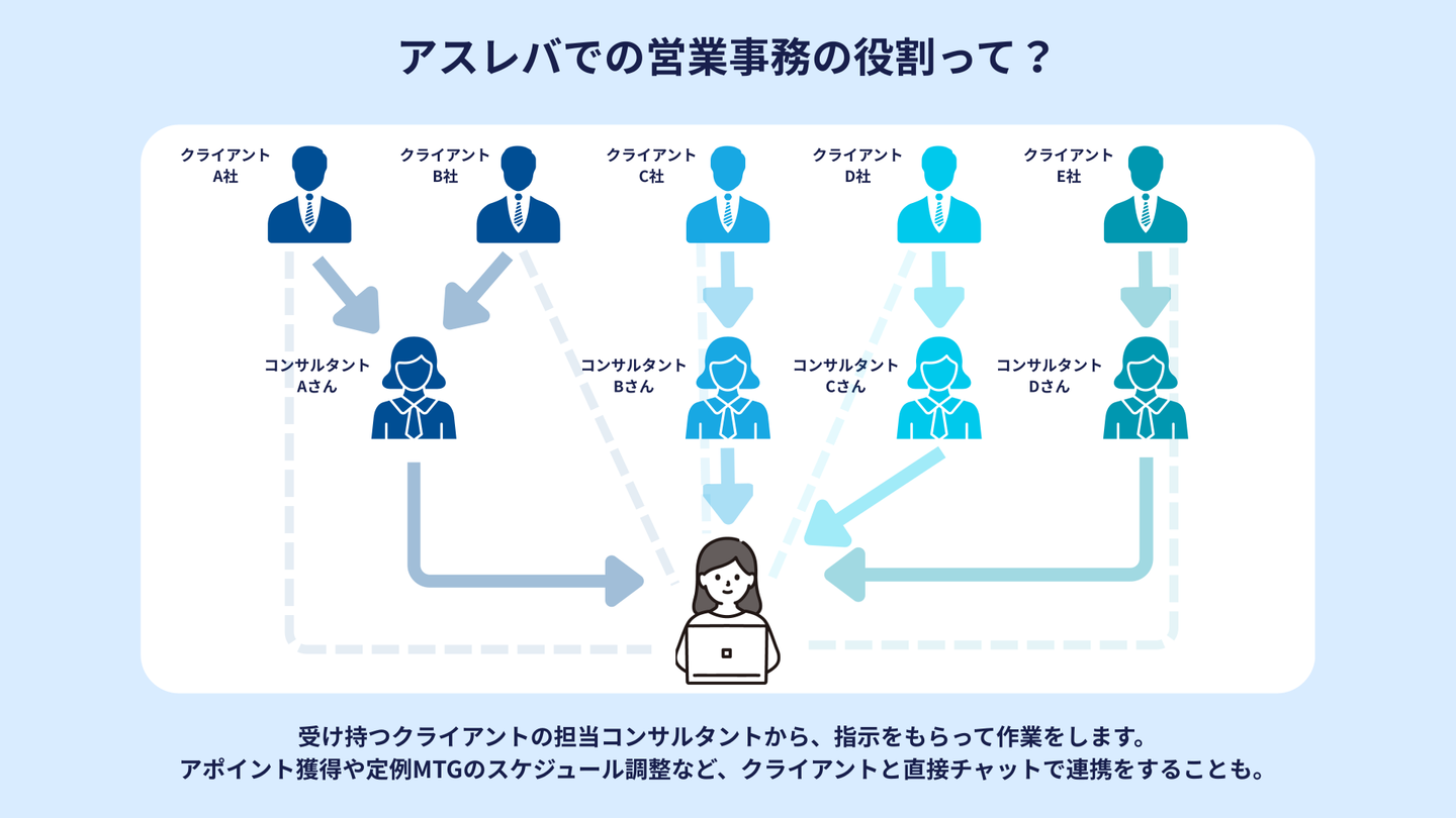 もちろん、アスレバの営業事務も「営業活動に集中してもらうためのサポート役」であることに変わりはありません。